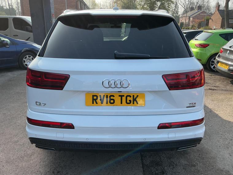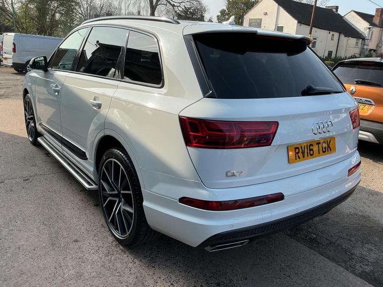 Full Service History to Include a Full Gearbox Service, HPI Clear, Previous MOT History, Half Leather and Alcantara S Line Seats, Heated Front Seats, Electric Front Seats With Lumber Support, Electric Folding Third Row Seating, Audi MMI Navigation and Media Control, Audi Smartphone Interface, DAB Radio, Bluetooth + USB Connectivity, Wireless Charging, Apple CarPlay, Four Zone Digital Climate Control with Air Conditioning, Multi Functional Steering Wheel with Paddleshift Control, Audi Drive Select, Cruise Control, Speed Limiter, Electric Heated Folding Mirrors, Electric Windows, Remote Central Locking, Spare Key, Power Tailgate Operation, LED Daylights, Xenon Headlights, Headlight Washers, Reverse Camera, Auto Lights, Parking Aid, High Beam Assist, Multi Spoke Alloy Wheels, Black Pack, Black Roof Rails, Side StepsThis 2016 Audi Q7 TDI V6 S line boasts a clear vehicle history, offering peace of mind for its next owner. This impressive seven seater features a powerful 3.0 litre diesel engine paired with Audi's renowned four wheel drive system, ensuring capability in all conditions. The S line trim enhances its already sophisticated presence, while the Euro 6 emission class reflects its modern engineering. For convenience, it includes an Acoustic and Visual Parking System with front sensors, automatic all weather LED headlights, and Bluetooth connectivity for both audio streaming and mobile telephone use.The Audi Q7 TDI V6 S line is designed for both performance and practicality, accelerating from 0 to 60 miles per hour in a swift 7.0 seconds. This strong performance, combined with a substantial towing weight of 2800 kg, indicates its superior capability compared to many other vehicles in its class. Furthermore, its placement in a low insurance group makes it an economical choice.AA APPROVED DEALER….AA WARRANTIES AND AA ROADSIDE ASSISTANCE….DRIVE AWAY INSURANCE (T’s and C’s)....ALL OF OUR RETAIL VEHICLES ARE SOLD WITH 6 MONTHS AA WARRANTY, FULL MOT AND SERVICE IF REQUIRED....PART EXCHANGES WELCOME….. FINANCE ARRANGED FOR ALL TYPES OF CREDIT PROFILES ….BASED IN THE HEART OF HOLMES CHAPEL.