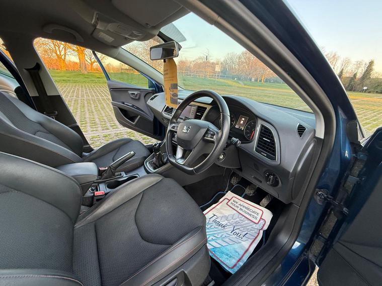 SEAT Leon 1.4 TSI FR Hatchback 5drReg: DE13 ZKTYear: 2013 (13)Mileage: 65, 463 milesFuel: PetrolTransmission: ManualColour: BlueOwners: 3 OwnersULEZ COMPLIANT | FR SPORT MODEL | GREAT SPECA sporty and well-maintained SEAT Leon FR, powered by the responsive 1.4 TSI engine producing 140 ps. This car offers excellent performance, sharp handling and a comfortable driving experience, making it perfect for both daily use and longer journeys.Key Features• Bluetooth Connectivity• Android Auto• Cruise Control• Air Conditioning (A/C)• Front & Rear Electric Windows• Electric Folding & Heated Mirrors• Front & Rear Parking Sensors• Xenon Headlights• Alloy Wheels• Locking Wheel Nut Key• Warranted Mileage• HPI Clear• ULEZ FreeCondition & DriveMechanically perfect – engine wise powerful, gearbox and suspension very smooth. Very well maintained car with comfortable seats. Looks and drives brilliant. Economical and low insurance. Truly superb throughout – first to see will buy.Warranty & PreparationFULL SERVICE HISTORY, FRESH SERVICE, FRESH MOT, FREE BREAKDOWN COVER, NATIONWIDE DELIVERY AVAILABLE3 MONTHS WARRANTY INCLUDED – EXTENDABLE UP TO 2 YEARSView By Appointment Only – Part Exchange Welcome.