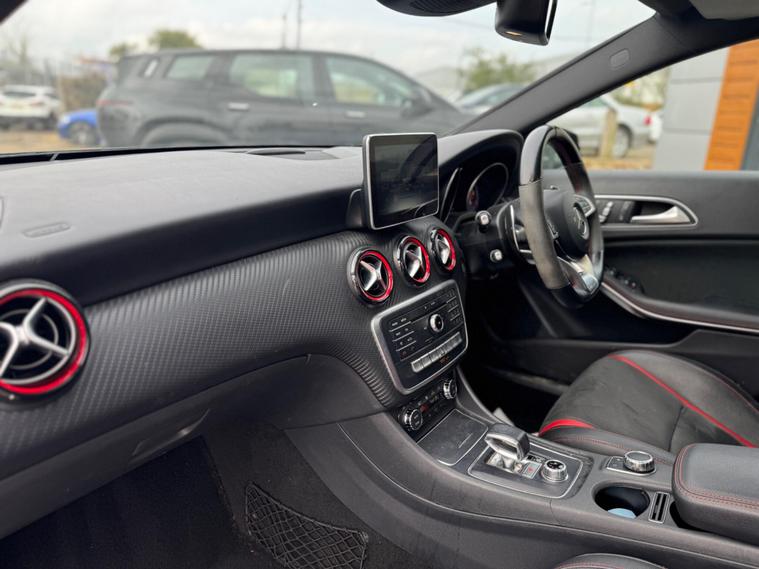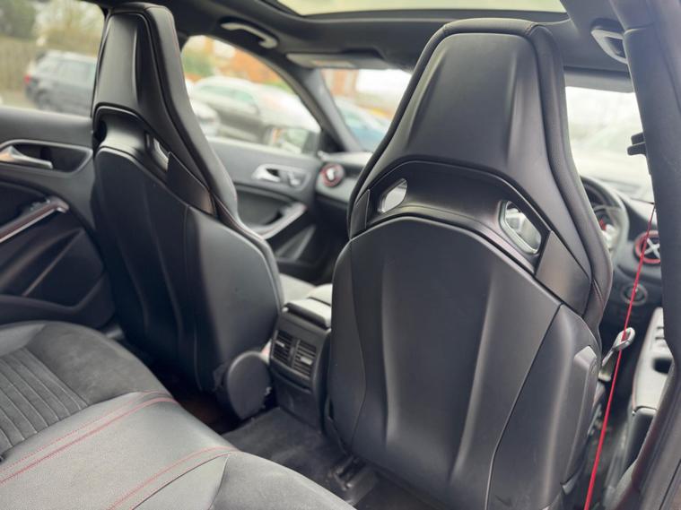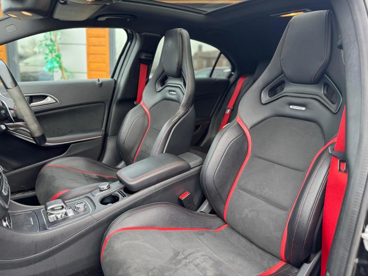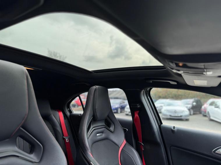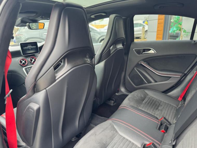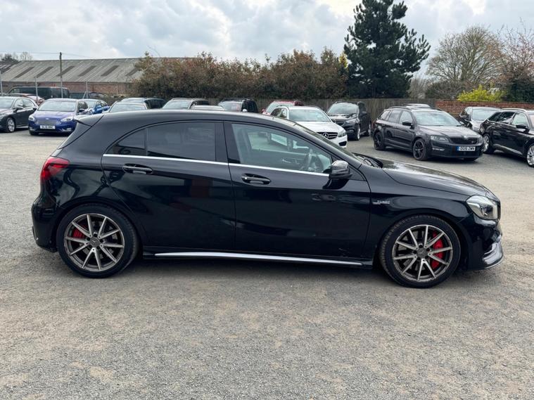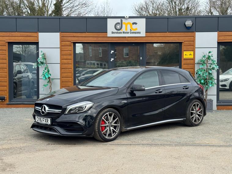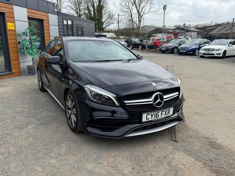 Experience exhilarating performance with this 2016 Mercedes Benz A45 AMG Premium, a true testament to German engineering. This four wheel drive model boasts a potent 2.0 litre petrol engine, compliant with Euro 6 emissions standards, ensuring a blend of power and efficiency. Inside, you'll find a host of premium features designed for comfort and convenience, including electrically adjustable front seats with memory function, Keyless Go for effortless entry and ignition, and striking LED headlights. The expansive panoramic sliding sunroof adds an open and airy feel to the cabin, while the generous boot space offers practicality for all your needs.This A45 AMG stands out from the crowd with its remarkable acceleration, achieving 0 to 62 miles per hour in a mere 4.2 seconds, a figure that underscores its sporting credentials. The inclusion of front parking sensors further enhances its usability, making manoeuvring in tighter spaces a breeze. These carefully selected features and impressive performance metrics demonstrate how this Mercedes Benz A Class offers a superior driving experience compared to other vehicles in its class..