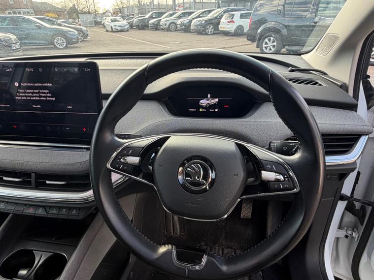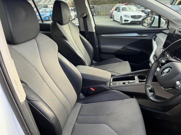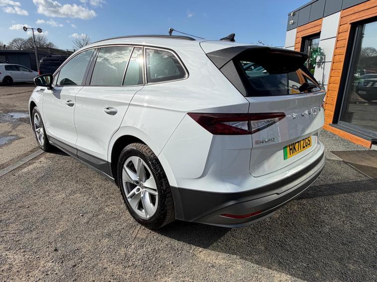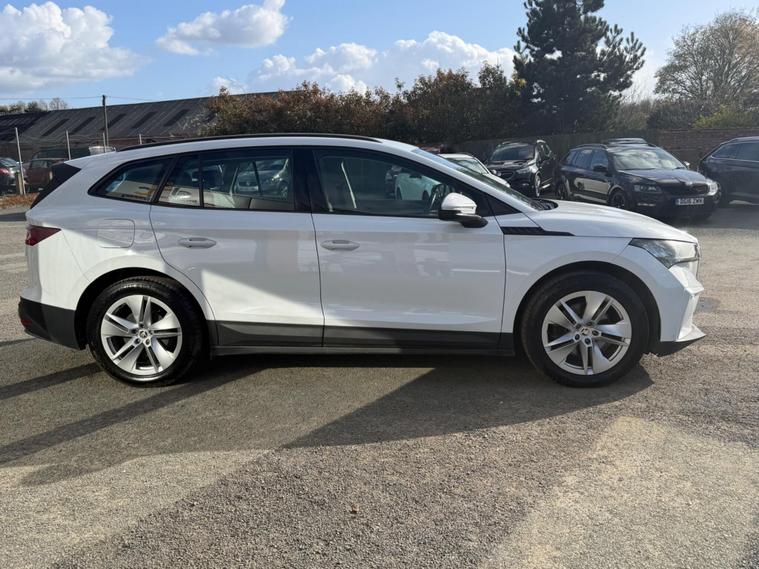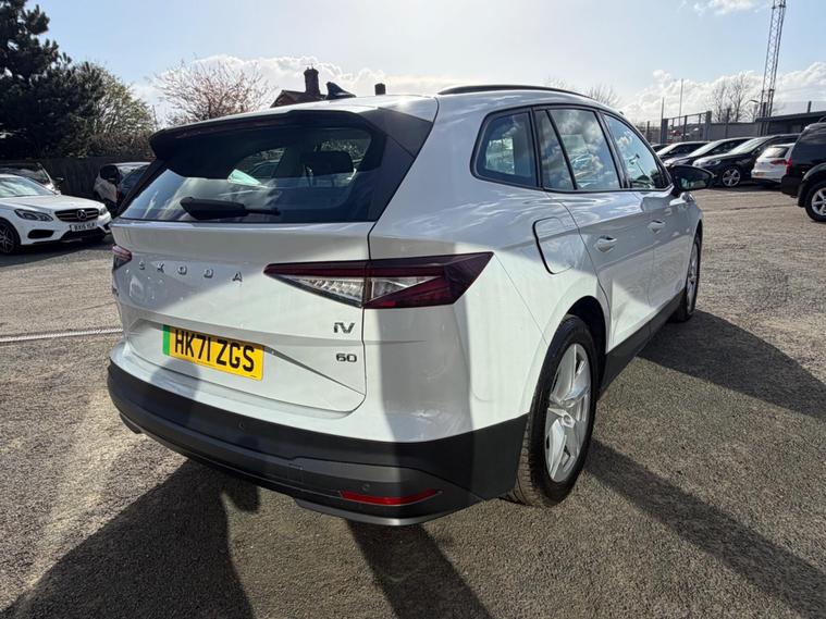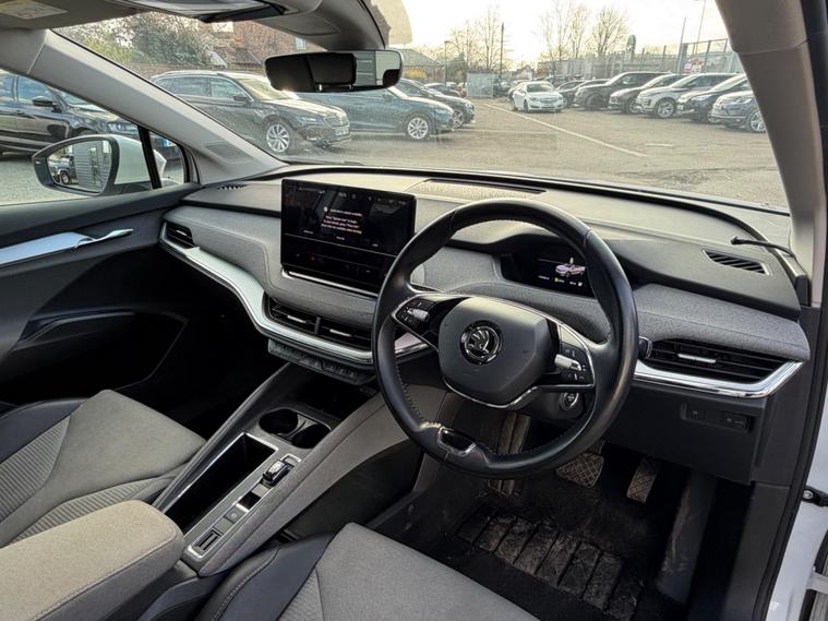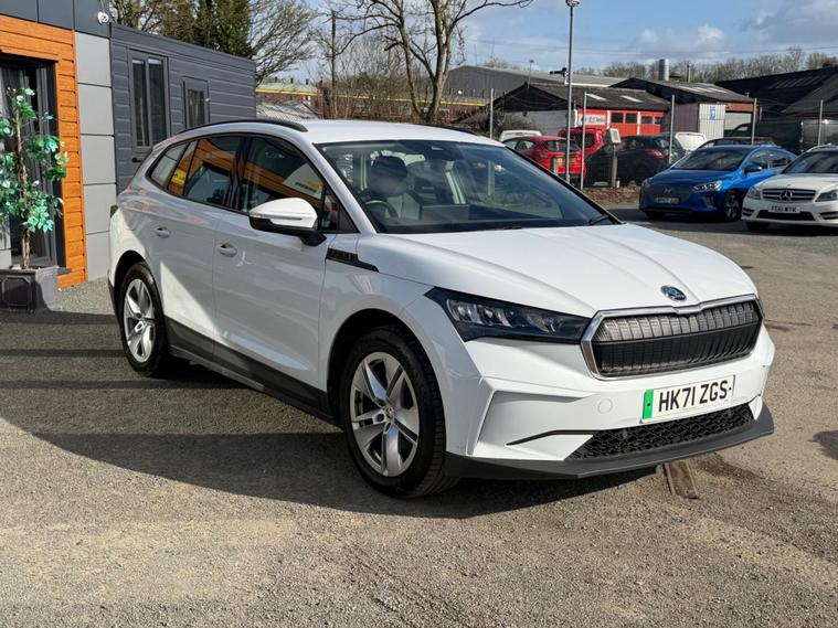 This 2021 Skoda Enyaq 60 has had only one owner from new and boasts a clear vehicle history check. As an electric vehicle, it features a 62 kWh battery offering a maximum range of 256 miles when new. Charging at home using a 7kW charger takes approximately 9 hours and 30 minutes, while rapid public charging can take the battery from empty to 80% in just 58 minutes. This Enyaq comes equipped with a Light and Rain Sensor, automatic headlights, rear parking sensors, and dual zone climate control. Connectivity is enhanced with Wireless Smartlink, including Android Auto, and Skoda Connect iV Remote Services.The Enyaq 60 offers a generous boot space, providing ample room for your luggage or shopping. Its advanced features, such as the dual zone climate control and automatic lighting, demonstrate a higher level of comfort and convenience compared to many other vehicles in its class. The inclusion of rear parking sensors further aids in everyday manoeuvrability, making this electric Skoda a practical and well appointed choice..
