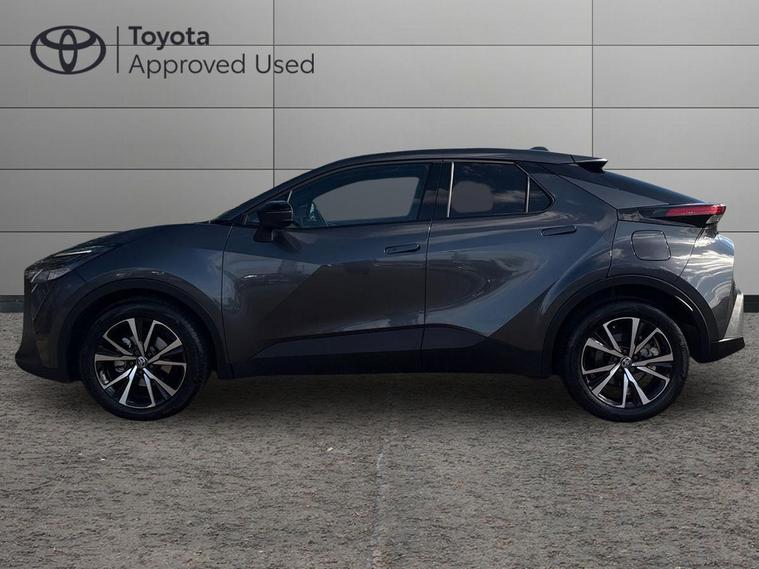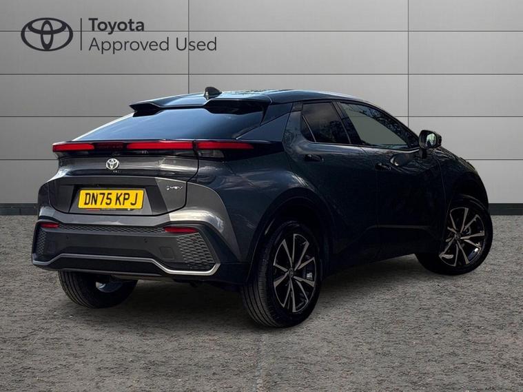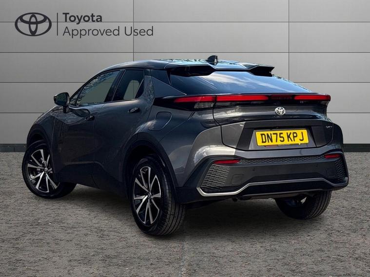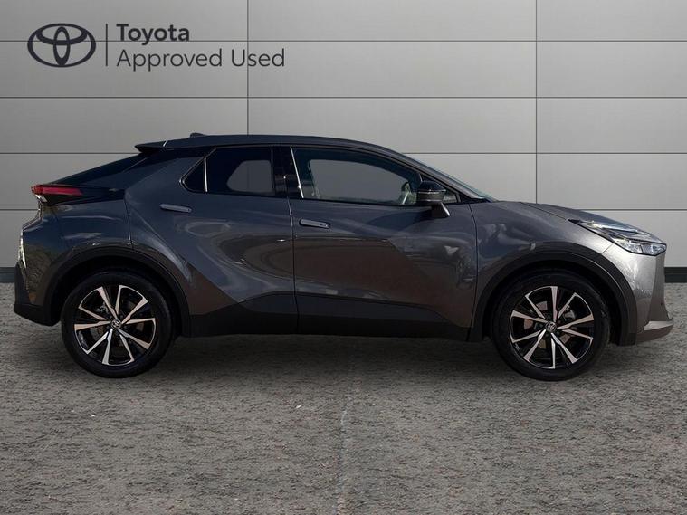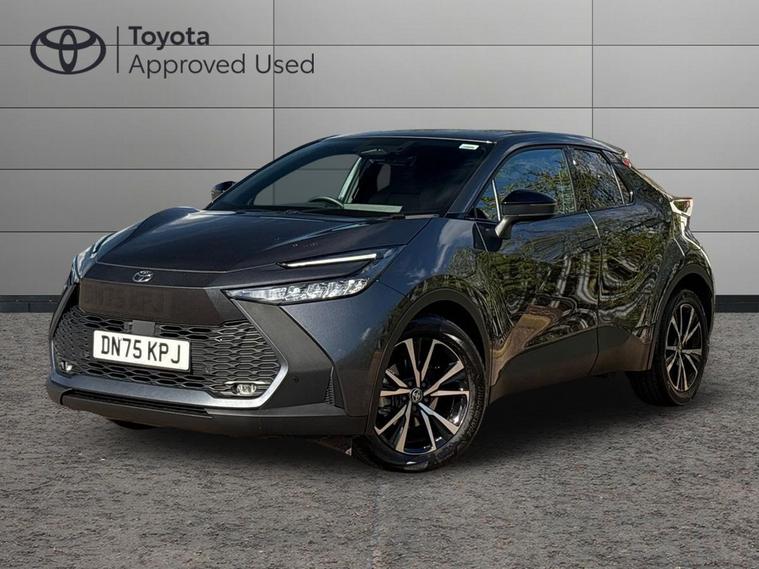 Boasting an incredibly low mileage of just 2807 miles, this 2025 Toyota C-HR VVT-h Design represents a superb ownership proposition. This Euro 6 compliant, 1.8L petrol hybrid is presented in Design trim and benefits from a full service history, with its last service completed on 2025-11-10 at only 10 miles. As a Toyota manufacturer approved vehicle, it comes with the reassurance of a 32 month warranty and an MOT valid until November 2028. This single owner vehicle also features heated driver and front passenger seats, intelligent front parking sensors with clearance sonar and automatic braking, dual zone automatic air conditioning, auto headlights, and wireless smartphone integration including Apple CarPlay.This Toyota C-HR stands out with its low CO2 emissions and low insurance group, indicating it is more economical to run and insure than many comparable vehicles. The combination of its advanced hybrid technology, comprehensive provenance, and desirable features makes this C-HR a compelling choice for those seeking a stylish and efficient compact SUV..
