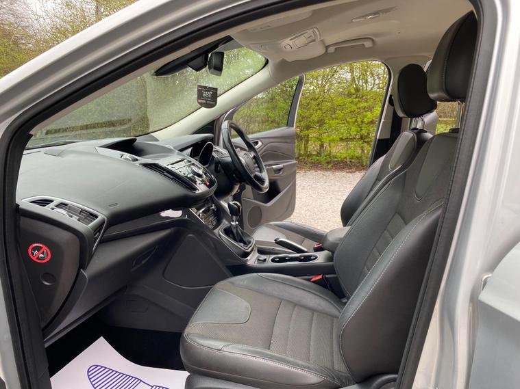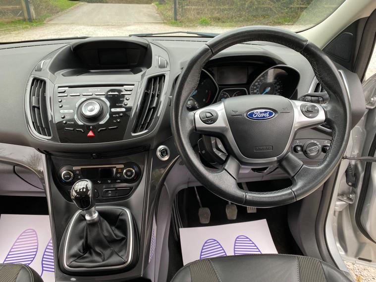 This 2015 Ford Kuga TDCi Titanium presents an exceptional opportunity with its remarkably low mileage of just 54, 001 miles for its age. This well appointed SUV features a robust 2.0L diesel engine, meeting Euro 6 emissions standards, and comes with a reassuring 6 months warranty for your peace of mind. Inside, you'll find comfort and convenience with dual zone electronic automatic climate control and the practicality of Bluetooth hands free phone connectivity. The Titanium trim also includes automatic headlights, ensuring optimal visibility in varying light conditions.The Ford Kuga TDCi Titanium stands out with its impressive fuel economy, achieving an excellent 60 mpg, which is a significant advantage for running costs compared to many other vehicles in its class. Its low CO2 emissions further contribute to its economical and environmentally conscious profile. This combination of low mileage, excellent fuel efficiency, and desirable features makes this Kuga a compelling choice for those seeking a reliable and cost effective family vehicle..