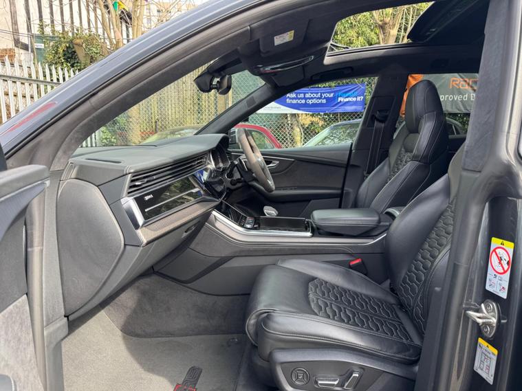 This 2023 Audi RSQ8 TFSI V8 Vorsprung is a remarkable example of performance and luxury, boasting a powerful 4.0 litre petrol engine and a sophisticated four wheel drive system. As a Euro 6 compliant vehicle, it meets stringent emission standards. This impressive machine offers a substantial towing weight of 3500 kg, making it exceptionally versatile for a variety of needs.Experience exhilarating performance with the RSQ8's rapid 0-62mph acceleration in just 3.8 seconds, a figure that truly sets it apart from similar vehicles. The Vorsprung trim level enhances the driving experience with advanced features such as Audi HD Matrix LED headlights, a Head Up Display, and a Parking System Plus with a 360 degree camera for effortless manoeuvring. Enjoy the open air with the panoramic glass sunroof, and appreciate the generous boot space, all contributing to a superior driving experience..
