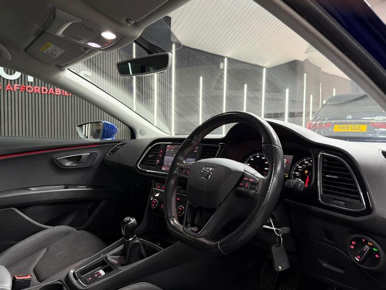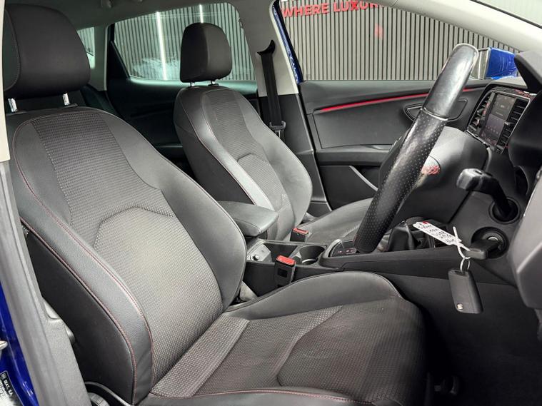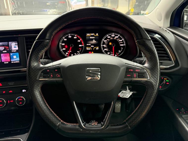 - Steering Wheel - Flat-Bottomed Perforated Leather with Red Stitching and FR Logo