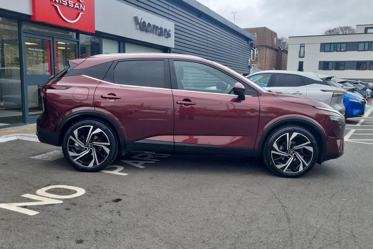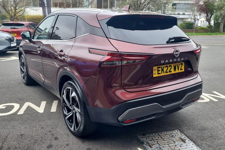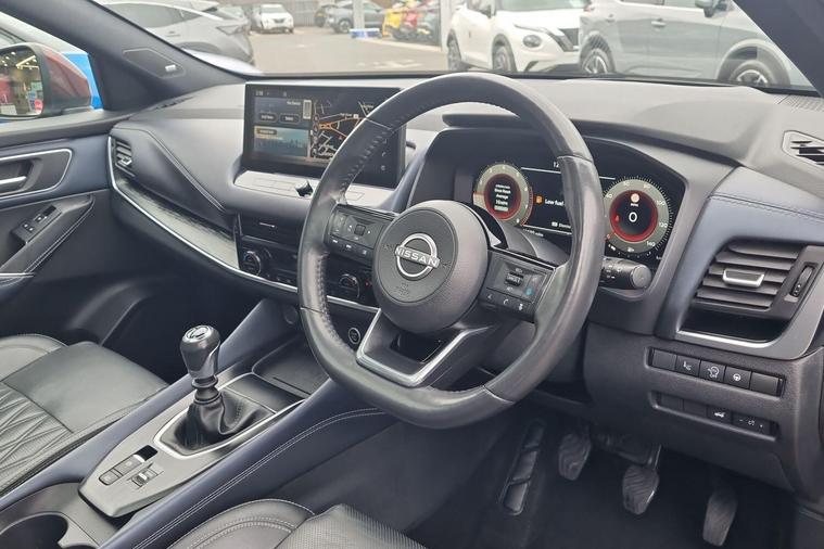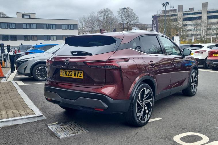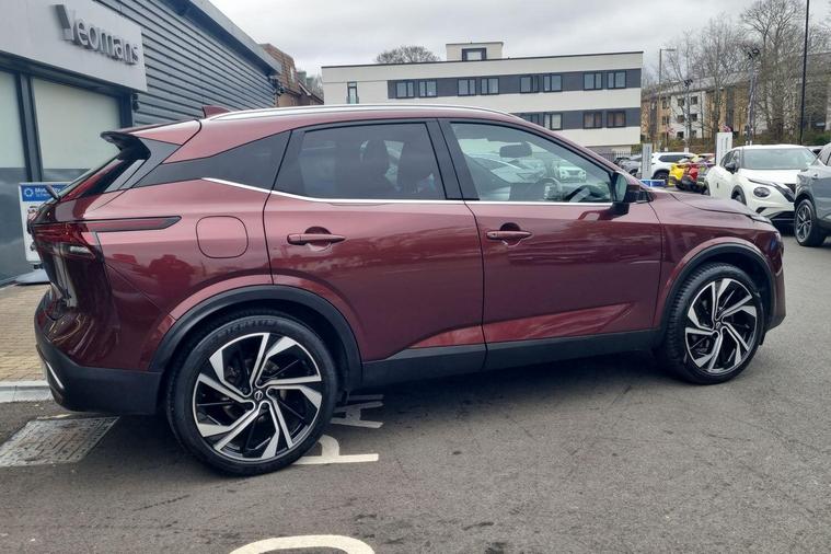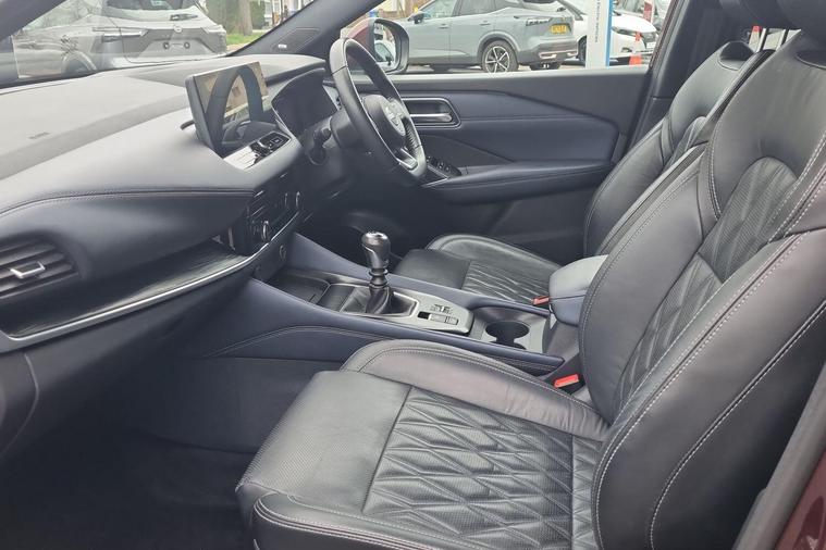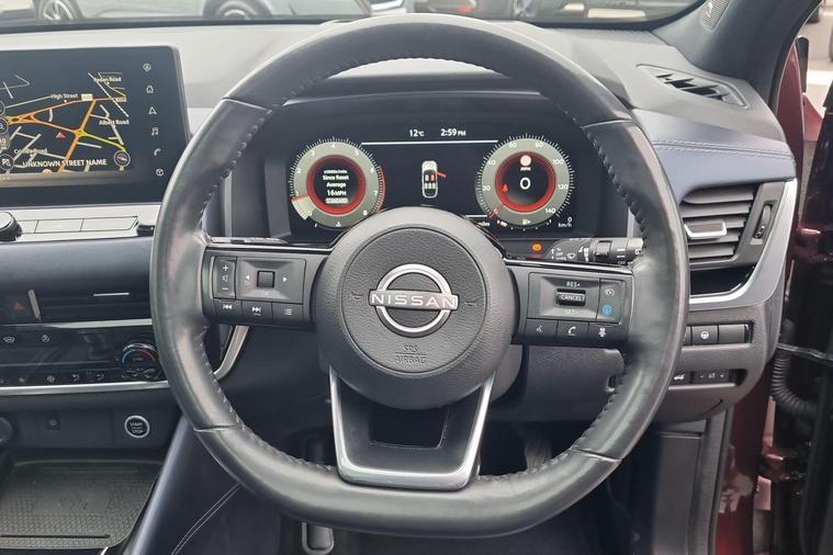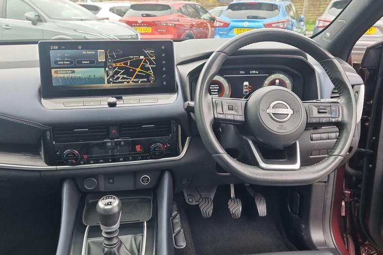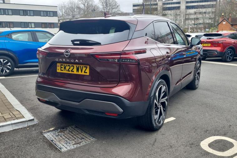 This 2022 Nissan Qashqai DIG-T Tekna+ is a Nissan manufacturer approved vehicle, offering peace of mind. It features a 1.3 litre petrol hybrid engine and meets Euro 6 emission standards. This Tekna+ model comes equipped with advanced LED headlights that include adaptive driving beam technology, ensuring optimal visibility. Parking is made simpler with front and rear parking sensors, complemented by a rear view camera.Experience cutting edge technology with the advanced windscreen head up display, projecting key information directly into your line of sight. Stay seamlessly connected with wireless Apple CarPlay, allowing for easy access to your smartphone's features. These highlights demonstrate how this Qashqai offers a superior driving experience compared to other vehicles in its class..