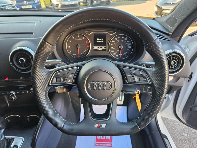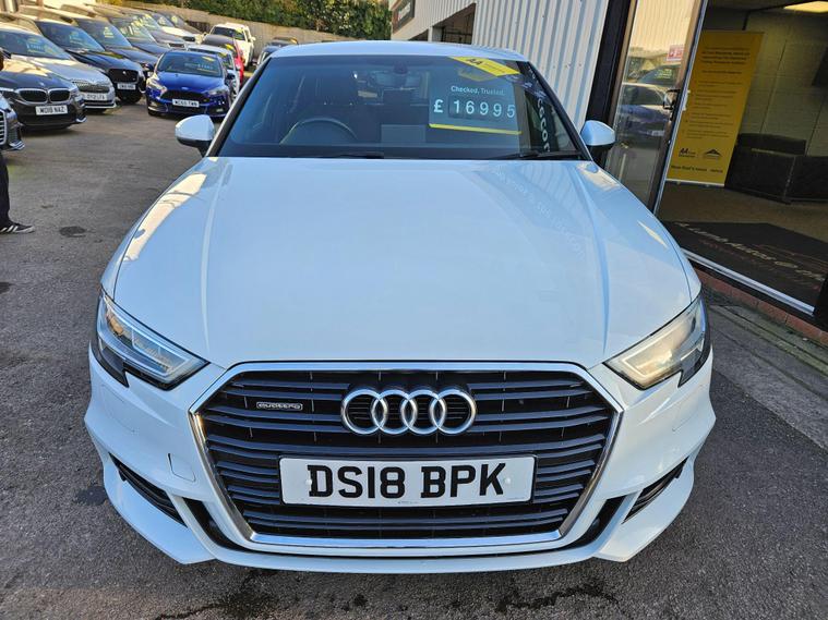 Boasting exceptionally low mileage for its age, this 2018 Audi A3 TFSI S line presents a superb ownership proposition with a full dealership service history and a clear vehicle history check. This four wheel drive model, powered by a 2.0 litre petrol engine, meets Euro 6 emissions standards and comes with a three month warranty for your peace of mind. Notable features include Dual Zone Electronic Climate Control, an auto dimming rear view mirror with light and rain sensors, and rear parking sensors to aid manoeuvrability. You'll also appreciate the convenience of the Bluetooth interface for seamless connectivity and the striking LED headlights with dynamic rear indicators.This Audi A3 TFSI S line offers impressive performance and efficiency, with a rapid 0 to 62 mph acceleration time of just 6.2 seconds, demonstrating its capability beyond that of many similar vehicles. Its fuel economy is a highlight, achieving an excellent 49 miles per gallon, and it also boasts low CO2 emissions, making it a more environmentally conscious choice. These combined attributes signify a vehicle that is not only engaging to drive but also economical to run, setting it apart from other cars in its class.This vehicle boasts full Audi main agent service history with services carried out at 13869 miles, 37352 miles, 38470 miles and 46312 miles meaning it has been maintained to the very highest possible standard.It is presented truly excellent condition throughout and drives superb. Viewing, test drive and inspection welcome.Finance available..