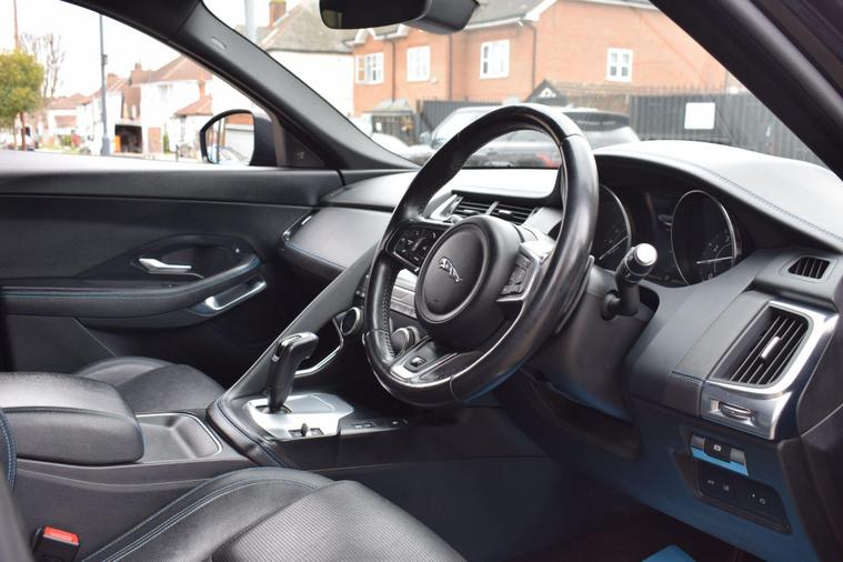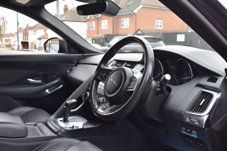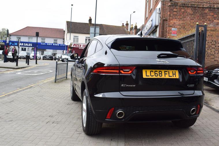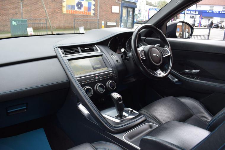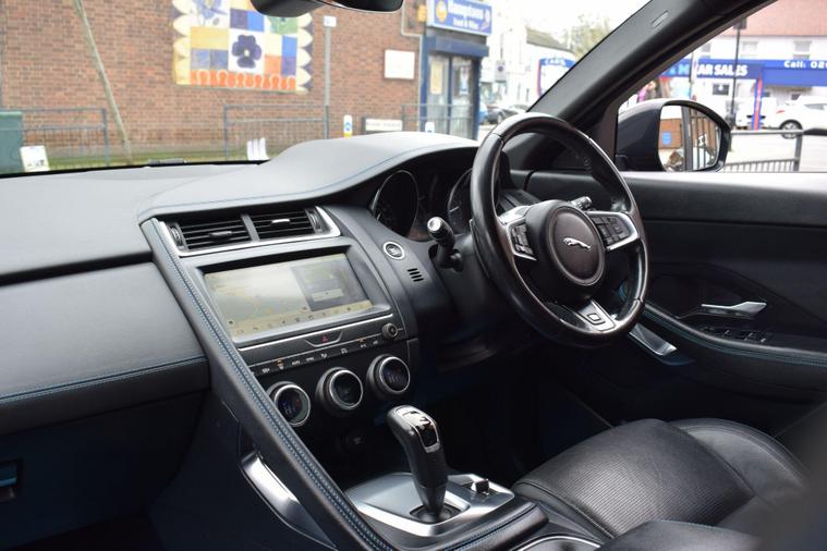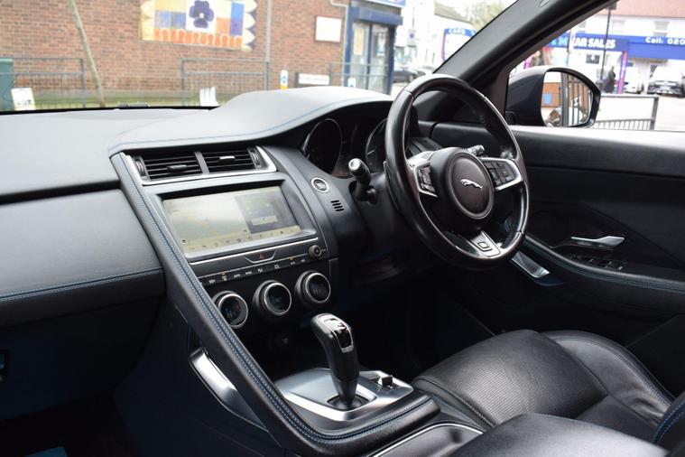 This 2018 Jaguar E-PACE P200 R-Dynamic S boasts a single owner from new, offering excellent provenance. This stylish compact SUV is powered by a 2.0 litre petrol engine, delivering its power through a capable four wheel drive system. It meets Euro 6 emissions standards and features distinctive R-Dynamic S styling. Inside, you'll find convenient 2-zone climate control and Bluetooth connectivity for seamless integration of your devices. The LED headlights with signature daytime running lights ensure excellent visibility.The E-PACE P200 R-Dynamic S offers a compelling blend of performance and practicality. Its acceleration from 0-60mph in just 7.7 seconds demonstrates its responsive nature, a performance benchmark that sets it apart. The large boot space provides ample room for luggage or shopping, making it a versatile choice for everyday life. The inclusion of 350mm front brakes highlights a focus on robust stopping power, further enhancing the driving experience and safety.+HPI CLEAR+1 OWNER+2 KEYS+FULL SERVICE HISTORY+LOOKS AND DRIVES GOOD+SAT NAV+HEATED SEATS+PX POSSIBLE+FINANCE AVAILABLE+FREE WARRANTY+VIDEO ON REQUEST+.