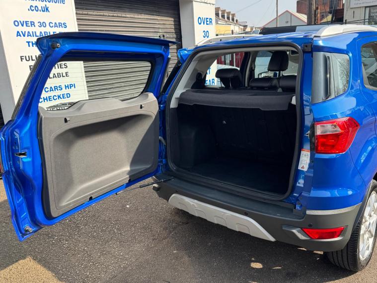 HERE WE HAVE ON SLAE IS THE WONDERFUL FORD ECOSPORT 1.0T ECOBOOST TITANIUM 2WD FINISHED IN METALLIC dealer's website WITH ELECTRIC WINDOWS, ELECTRIC MIRRORS, MULTIFUNCTIONAL STEERING WHEEL, ALLOY WHEELS, REMOTE CENTRAL LOCKING AND X 2 KEYS....................THIS VEHICLE BOASTS FULL SERVICE HISTORY CONSISTING 12 MILES, 8259 MILES, 15746 MILES, 21830 MILES, 34781 MILES, 44733 MILES, 70227 MILES AND 80758 MILES MEANING THIS VEHICLE HAS BEEN MAINTAINED TO AN EXCELLENT STANDARD..................THIS VEHICLE WILL BE SERVICED AT POINT OF SALE AND COMES WITH BRAND NEW 12 MONTHS MOT....................THIS VEHICLE IS IN EXCELLENT CONDITION AND DRIVES LIKEWISE.................CALL OUR SALES TEAM ON 01275242671 TO BOOK A TEST DRIVE....................FINANCE AVAILABLE ON REQUEST..