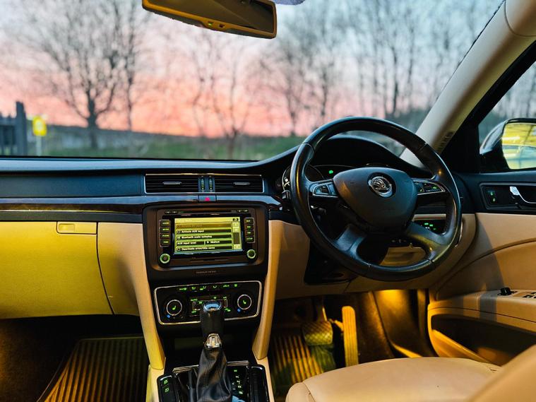 3 PREVIOUS OWNERS | MOT UNTIL JUNE 2026 | £265 ROAD TAX PER YEAR | EURO E6 COMPLIANT. 2014 Skoda Superb Elegance 1.8 TSI with just 66, 908 miles, clear history, Bi-Xenon headlights, heated memory seats, Bluetooth connectivity, huge boot space, and a quick 0–60 mph in 8.2 seconds..