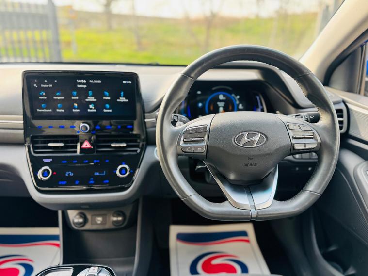 1 PREVIOUS OWNER | MOT UNTIL JANUARY 2027 | £195 ROAD TAX PER YEAR The 2022 Hyundai IONIQ Premium is an efficient electric car with a 43 kWh battery offering up to 193 miles of range, fast and home charging options, and features like a rear camera, Bluetooth, wireless charging, Apple CarPlay , Android Auto, heated seats and steering wheel, plus practical boot space for everyday use..