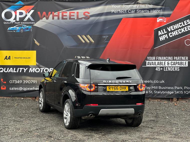 Land Rover Discovery Sport 2.0 TD4 HSE Luxury Auto 4WD Euro 6 (s/s) 5drRY66 DHK | 2017 (66) | 88, 000 miles | Diesel | Automatic | Black | 2 owners | ULEZFinished in black with a high-spec luxury interior, this Land Rover Discovery Sport HSE Luxury Auto 4WD offers the ideal mix of family practicality, refinement and all-weather capability. Powered by the 2.0 TD4 diesel engine with automatic gearbox and 4WD, it is Euro 6 / ULEZ compliant, making it well suited to both city driving and longer journeys.2 Owners and Full Service HistoryHPI Clear & Timing chain done at Land Rover 80, 980 Miles - cost 4000 PoundsHeated seats and steering, Panoramic roof Driver Assist / ConvenienceCruise control with speed limiterPush button startLane keep assistDriver condition monitorTraffic sign recognitionFront parking aidRear parking aidRear view cameraPark assistPowered gesture tailgateAutonomous Emergency Braking (AEB)Pedestrian Protection systemDue to high demand, early booking of viewings is recommended. Arrange yours via our website https:/ dealer's website or by calling +44 (0)7349390791Our friendly team will look after you before, during and after the sales. We will help you with taxing the vehicle, completing official forms, and we will make sure that you, your family and loved ones are safe on the road. We also offer a wide range of warranties and finance to meet your needs. WHO WE AREWe are a car dealership with 16 years of experience, based in Clarence Street, Stalybridge, SK15 1QF. We are 100% sure that we can find you the right vehicle as we offer over 150 cars for sale at any time. OUR QUALITY PROMISE- Every car comes with our FREE 3 Months warranty- We offer a fresh MOT for all vehicles due for one within the next 3 months. - All our vehicles are HPI Clear and undergo a 39-Point check, conducted by professional inspectors. - Every vehicle is valeted and sanitised to a high standard. - We are able to offer delivery nationwide at competitive prices, don't hesitate to contact us for a quote.QPX Wheels Team.https:/ dealer's website