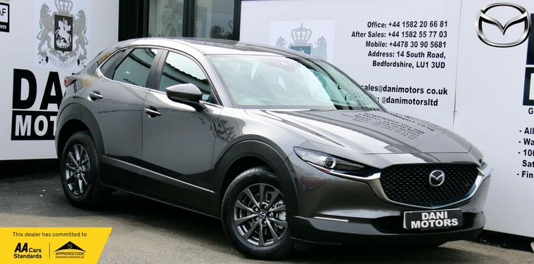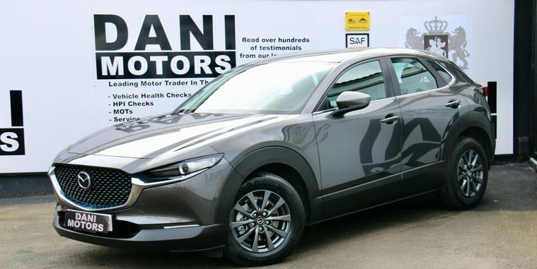 This absolutely stunning Mazda CX-30 finished in GREY features an array of extras from factory include, Apple carplay and Android auto, Reverse camera, and Parking sensors, Heads up speed display, Blind spot assist, Cruise control (adaptive), Electric folding mirrors, Heated seats, Alloy Wheels, Navigation System, Bluetooth, DAB Radio and so much more. This vehicle is ULEZ Compliant. FREE 12 Months MOT provided upon request, We offer optional Ceramic Coating to all our vehicles which benefits for added paintwork protection and prolonged enhancement of the paintwork to your new car. You may see reflections of other surrounding objects. Full Dealer Facilities. HPI Clear, Service History, Only 1 Owner from New, Brilliant Value. All our cars undergo a comprehensive 150 point check together with a brake inspection. Mechanical Report and HPI Certificate provided (upon request). Here at Dani Motors, quality matters to us. Not just quality service but the high quality of our vehicles, and the standard at which they hit our forecourts. Our sole purpose is to deliver the highest quality cars possible, both mechanically and aesthetically. You can also reserve the car until you can come and take it for a test drive, so you do not miss out! Buy your next car from us, as we are a trusted used car dealership. We also provide finance from a few UK's leading lenders, an optional extra 5-day drive-away insurance, part exchange so you can get everything sorted in one place. Every car has passed a rigorous pre-sales inspection in our workshop, which are home to our technicians..