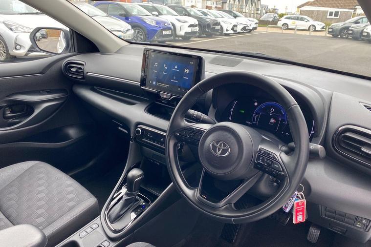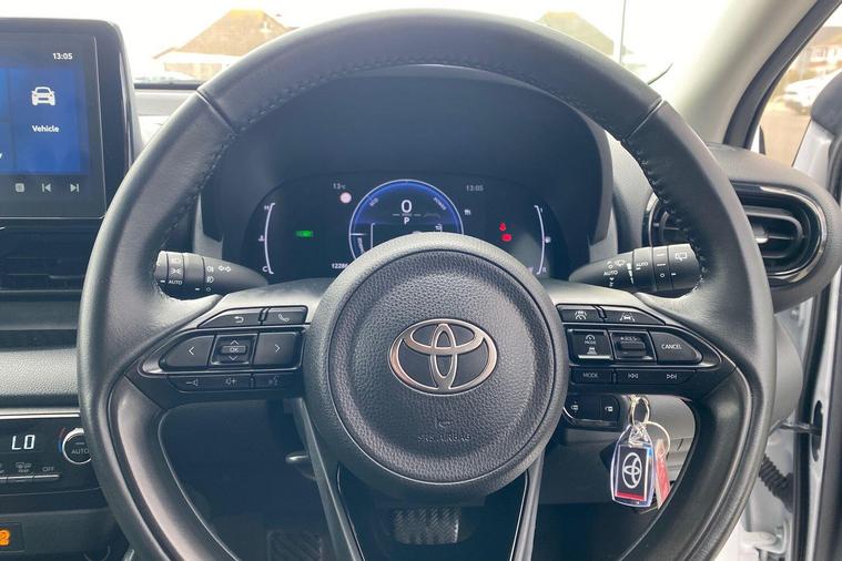 This 2024 Toyota Yaris VVT-h Design is a Toyota manufacturer approved vehicle with a full dealership service history, having had only one owner. It features a 1.5L Petrol Hybrid engine and meets Euro 6 emission standards. This model comes with a 12 month warranty and a 12 month MOT provided on purchase, with its last service completed on 21 January 2026 at 11, 145 miles. Notable features include a reversing camera with parking assistance, smartphone integration with Apple CarPlay and Android Auto, LED front light guide headlights, and Toyota Safety Sense 2, which includes adaptive cruise control.The Toyota Yaris VVT-h Design offers impressive fuel economy, achieving a remarkable 69 mpg, which is a significant advantage over many other vehicles in its class. Its low CO2 emissions further highlight its efficiency and environmental consideration. This combination of excellent fuel economy, low emissions, and advanced safety and convenience features makes this Yaris a compelling choice for those seeking a modern and economical vehicle..