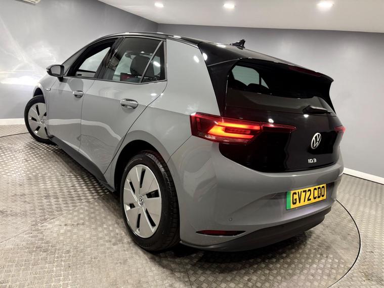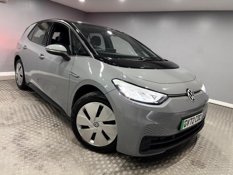 This 2022 Volkswagen ID.3 Pro Performance Life is a fantastic example of electric motoring, having had only one owner since new. Fresh pollen, brake fluid change and 2 new tyres completed by ourselcves March 2026. Grade A Battery health. As an electric vehicle, it offers a smooth and quiet driving experience. This particular model, the Pro Performance Life, is equipped with a 62 kWh battery, providing a maximum range of 265 miles when new. Notable features include front and rear parking sensors with parking assistance, an assistance pack with keyless entry and a rear camera, and all LED headlights. Inside, you'll find a 1 zone Climatronic system for comfortable cabin temperatures and Adaptive Cruise Control with Front Assist, which includes a distance monitoring system and city emergency braking.The ID.3 Pro Performance Life boasts impressive performance figures, accelerating from 0 to 62 miles per hour in just 7.3 seconds, demonstrating its responsive power. This electric hatchback also offers a generous boot space, making it practical for everyday use and longer journeys. Charging is convenient, with a full charge at home on a 7kW charger taking approximately 9 hours and 30 minutes, and rapid public charging from empty to 80% achievable in as little as 37 minutes. These highlights showcase the ID.3's capability and convenience, setting it apart in the electric vehicle market.SpecificationsThe data displayed above details the usual specification of the most recent model of this vehicle. It is not the exact data for the actual vehicle being offered for sale and data for older models may vary slightly. We recommend you check the vehicle details with your sales advisor before you buy..