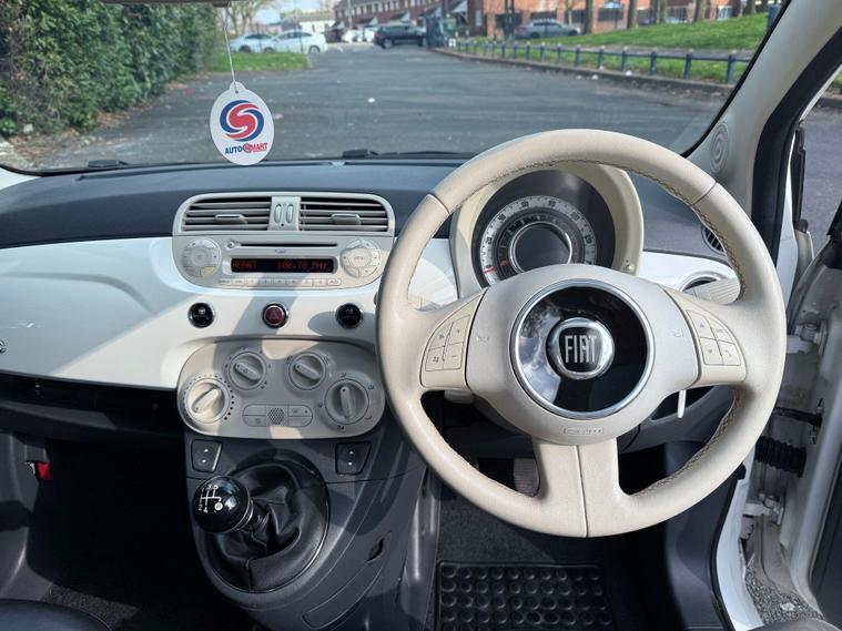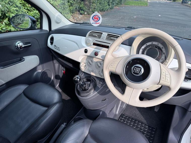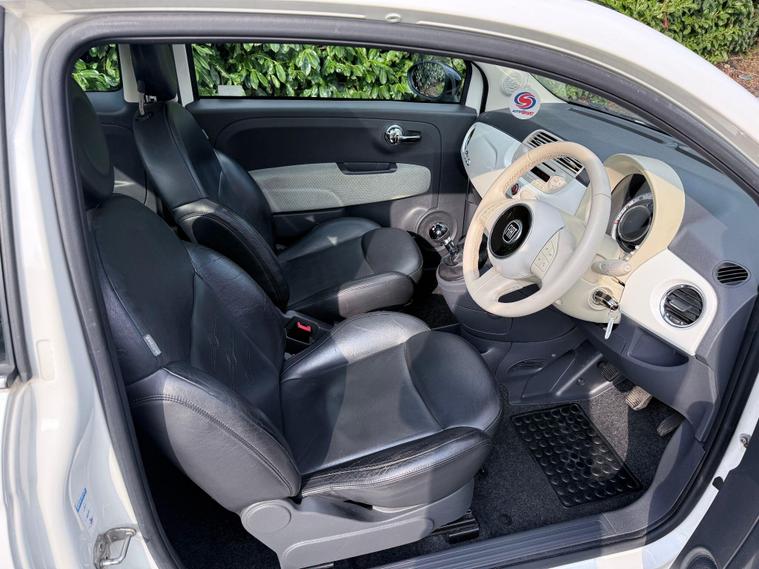 We are proud to offer this excellent Fiat 500 Pop, this example is finished in white with contrasting gloss black alloy wheels and mirrors giving this car a retro yet modern look. Having only covered 59, 000 miles this car is in excellent condition all round and it is evident that it has been well looked after for. Being the 1.2 petrol non turbo Lounge model this Fiat is cheap to run and insure (INSURANCE GROUP 6) hence making it an ideal first car for a new driver looking for a stylish little car, road tax is only £35 for the year. Specification includes remote central locking, air conditioning, panoramic glass roof, Black Pelle frau leather seats, leather multifunctional steering wheel, alloy wheels, bluetooth connectivity, AUX & USB ports., electric windows and mirrors. Full service history present with the car, we have just serviced this 500 and installed a new cambelt kit to ensure the new owner will have no upcoming expenses, viewing is highly recommended as this car will not disappoint..
