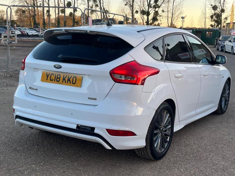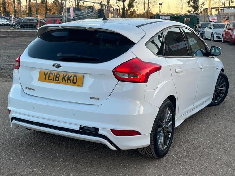This 2018 Ford Focus ST-Line offers exceptional value with its remarkably low mileage of just 52, 000 miles for its age. This particular model is the T ST Line variant, powered by an efficient 1.0 litre petrol engine and meeting Euro 6 emissions standards. It comes equipped with manual air conditioning to ensure your comfort on every journey.You will appreciate the impressive fuel economy of this Focus, achieving a notable 58 miles per gallon, which is better than many similar vehicles. Its low CO2 emissions also contribute to its cost effectiveness. Furthermore, this Focus boasts a generous boot space, making it practical for all your needs, and it can accelerate from 0 to 62 miles per hour in 10.4 seconds, demonstrating a good balance of performance and efficiency..