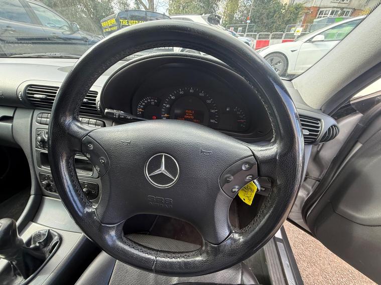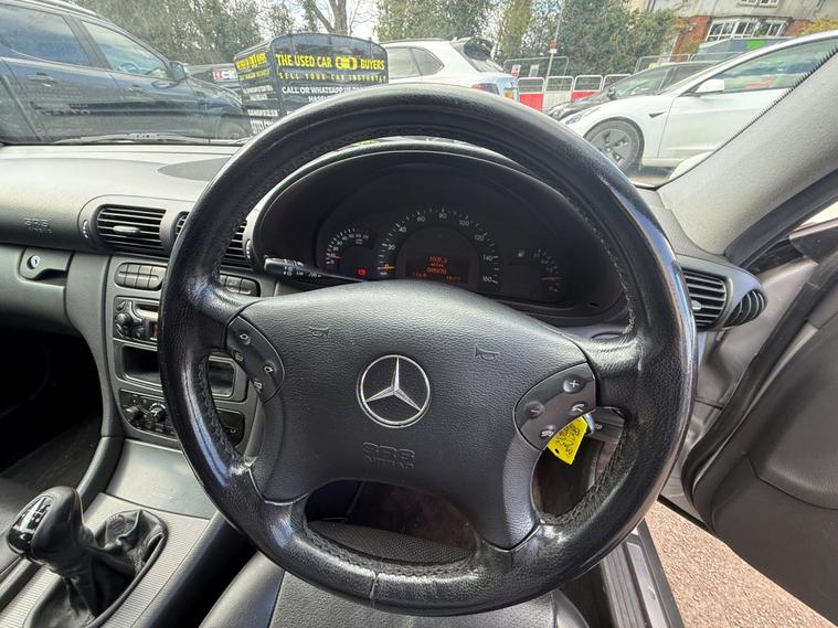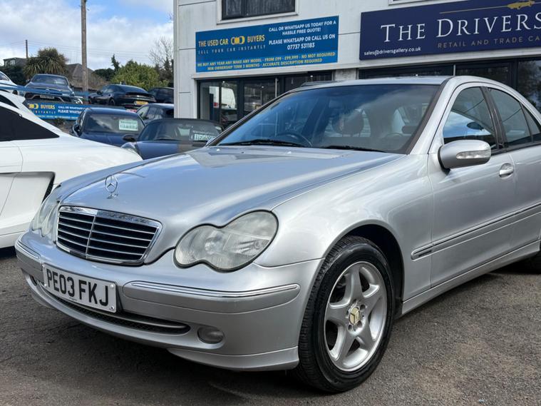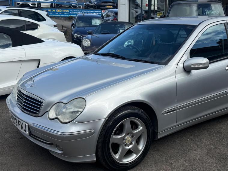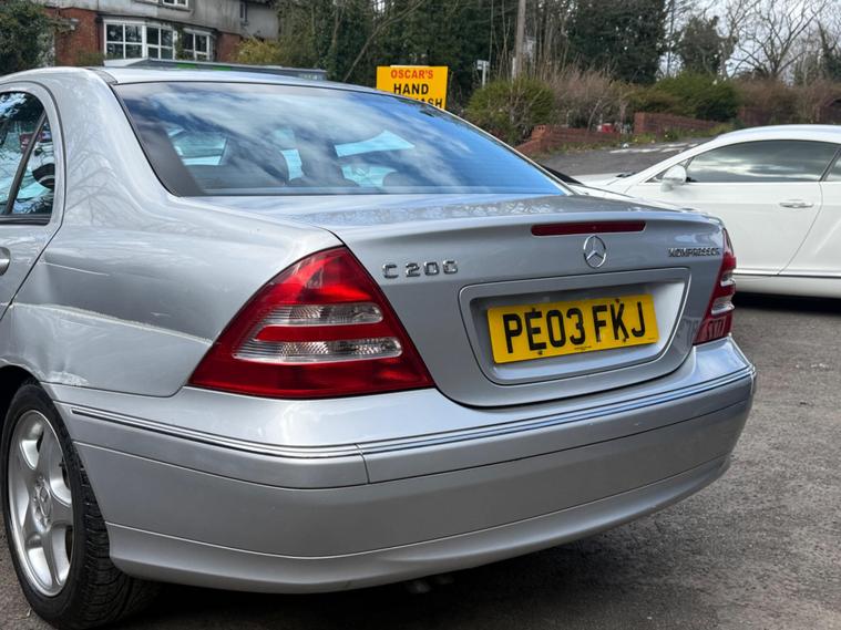 Taken in part exchange, this 2003 Mercedes-Benz C Class 1.8 C200 Kompressor Avantgarde 4dr. It has had 2 former keepers and comes with 8 services recorded in the book.Please note there are some marks around the vehicle, with visible imperfections on the passenger side rear arch – this has been reflected in the price.The vehicle will come with a fresh MOT carried out to MOT standard as part of the preparation process. It is currently due a service, which we can carry out for £100 if the new owner would like this completed prior to collection.Due to the age and mileage of this vehicle, it is sold as seen with no warranty implied or given..