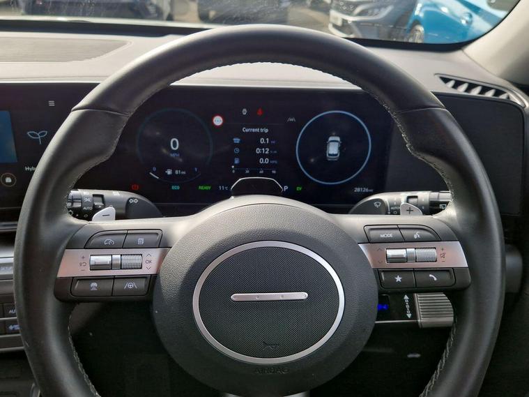 Hello and thank you for taking the time to view our vehicle listing.This is a superb Hyundai Kona 1.6 h-GDi Advance Hybrid Automatic, finished in the distinctive Mirage Green and having covered 28, 122 miles. This is a locally owned vehicle, originally supplied new by ourselves here at Hutchings Hyundai Swansea, giving you complete confidence in its history and condition.Powered by Hyundai’s efficient 1.6 petrol hybrid system producing 141PS, this Kona delivers a smooth, refined and economical driving experience. The automatic gearbox ensures effortless performance, while the hybrid system seamlessly switches between petrol and electric power to maximise fuel efficiency, making it ideal for both town driving and longer journeys.As the Advance specification, this model comes very well equipped with a great level of technology and comfort. Inside, you’ll find a modern cabin with a touchscreen infotainment system featuring Apple CarPlay and Android Auto, a digital driver display, rear parking sensors with reversing camera, air conditioning, cruise control and Bluetooth connectivity.The Kona is one of Hyundai’s most popular compact SUVs, offering a raised driving position, bold styling and excellent practicality. It provides a comfortable and versatile driving experience, making it a perfect all-round vehicle for everyday use.With local ownership and supplied by ourselves from new, this vehicle also benefits from the remainder of Hyundai’s 5 Year Unlimited Mileage Warranty, offering complete peace of mind.Prepared to the highest standard and ready to drive away, this is a fantastic opportunity to secure a well-maintained Kona Hybrid at excellent value.Contact us today to request your personalised video walkaround or to reserve this great example.