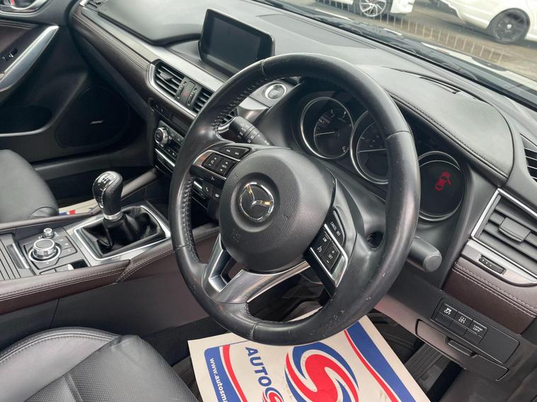 This 2016 Mazda6 SKYACTIV-D Sport Nav presents an exceptional ownership proposition with its remarkably low mileage of just 58, 300 miles, a clear vehicle history check, and having had only two previous owners. This Euro 6 compliant 2.2 litre diesel model, presented in the Sport Nav trim, offers a refined driving experience. It comes equipped with advanced features such as LED headlights with auto levelling, dual zone climate control for personalised comfort, and an integrated Bluetooth system for seamless connectivity. For added convenience and safety, it includes a reversing camera and a heated steering wheel, ensuring a comfortable journey in all conditions.The Mazda6 SKYACTIV-D Sport Nav stands out with its impressive fuel economy, achieving a remarkable 69 miles per gallon, which indicates it is more economical than many similar vehicles. Furthermore, its low CO2 emissions and low insurance group highlight its cost effectiveness for everyday use. This model also boasts a large boot space, offering practical versatility for shopping trips or luggage. To provide complete peace of mind, a 12 month MOT will be provided on purchase, underscoring its roadworthiness..