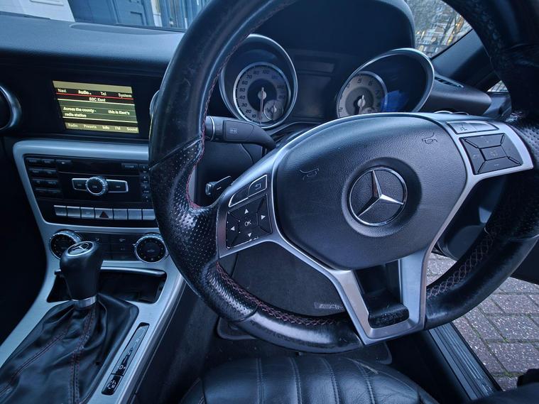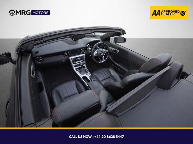 This 2014 Mercedes Benz SLK200 AMG Sport is presented with a clear vehicle history check and benefits from a full 12 months MOT provided on purchase, alongside a partial service history. This stylish convertible features a 1.8L petrol engine and AMG Sport trim, offering a refined driving experience. Notable features include air conditioning for your comfort, a Bluetooth interface for hands free telephone calls, and Headlamp Assist for automatic headlamp activation, ensuring you always have optimal visibility.The SLK200 AMG Sport stands out with its impressive fuel economy, achieving up to 44 mpg, which is better than many similar vehicles. It also boasts low CO2 emissions, making it a more environmentally conscious choice. Furthermore, this model offers generous boot space, providing practicality for your journeys, all contributing to a superior ownership experience..
