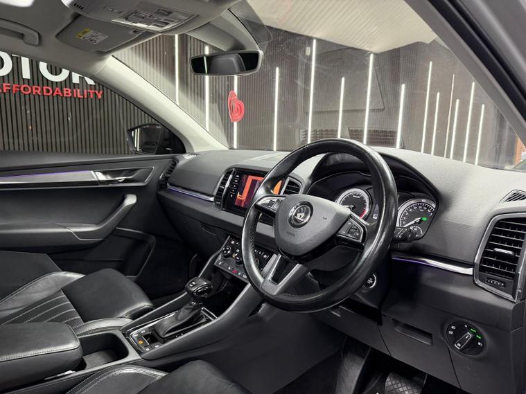At Hiline Motors, we specialize in offering a carefully curated selection of luxury vehicles, all sourced directly from authorized main dealerships. Unless otherwise specified in the listing, our vehicles are not part exchanges, ensuring premium quality and provenance.Each car we offer comes with outstanding specifications and a comprehensive service history, giving you complete peace of mind. Plus, we can provide up to 2 years warranty (available for an additional cost), ensuring your investment is protected.This 2019 Skoda Karoq TDI Edition boasts a full service history and a clear vehicle history check, offering you peace of mind. This four wheel drive model features a 2.0 litre Euro 6 diesel engine, ensuring efficient performance. Inside, you'll find a spacious cabin equipped with dual zone climate control, heated front seats for those colder mornings, and a DAB digital radio with Bluetooth connectivity for your entertainment and convenience. The Edition trim also includes a fixed panoramic sunroof, bathing the interior in natural light, and front and rear parking sensors to assist with manoeuvring.The Skoda Karoq TDI Edition stands out with its generous boot space, making it ideal for families or those who need extra room for luggage or shopping. Furthermore, its low insurance group rating indicates that running costs are kept to a minimum, offering excellent value. A 12 month MOT will be provided upon purchase, confirming its roadworthiness. This combination of practical features, excellent provenance, and cost effective ownership makes this Karoq a compelling choice.Before delivery/collection, every vehicle undergoes a fresh 12-month MOT and, if required, a service, ensuring it’s in optimal condition. We also offer 12 months of AA Breakdown Cover for just £10, providing you with added security on the road.At Hiline Motors, we’re committed to delivering / selling exceptional cars with exceptional service..