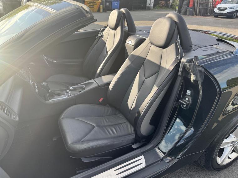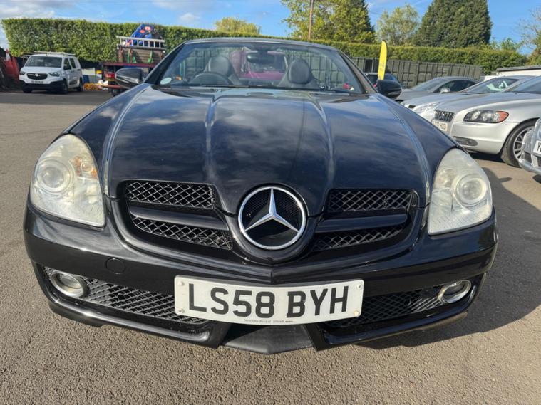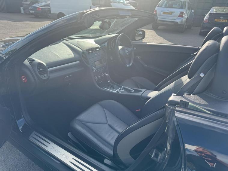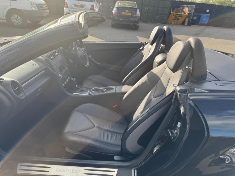 THIS FACELIFT MODEL Mercedes-Benz SLK 1.8 SLK 200K Tiptronic FULLY AUTOMATIC Euro 4 2dr POWER ROOF CONVERTIBLE IT LOOKS AMAZING IN THE BEST COLOUR EBONY METALLIC CONTRASTING BLACK LEATHER AND ALUMINIUM TRIM TO THE DASH AND DOOR CARDS YES VERY SMART. THE LAST OWNER HAS LOVED AND CHERISHED THE CABRIOLET FOR 7 YEARS & YOU CAN TELL THAT BY THE SUPERB CONDITION THE IS IN YES AND IT'S REALLY GOOD MILEAGE FOR THE YEAR 7K WITH A GOOD SERVICE HISTORY. THE ROADSTER HAS A POWER CONVERTIBLE SUNROOF, FACTORY TELEPHONE BLUETOOTH TELEPHONE CONNECTION, STEREO RADIO/CD-PLAYER, REMOTE CONTROL CENTRAL LOCKING SYSTEM, 17''ALLOY WHEELS WITH GOOD TYRES. THERE ARE 2 SETS OF KEYS AND ALL THE BOOKS AND MANUALSThis 2008 Mercedes Benz SLK200K boasts an impressive history with only three previous owners, a testament to its enduring appeal. This stylish convertible features a responsive 1.8 litre petrol engine, offering a smooth and engaging driving experience. Inside, you'll find modern conveniences such as an integrated Bluetooth system for seamless phone connectivity and auto climate control to ensure your comfort in all conditions. With a commendable fuel economy of 35 miles per gallon, this SLK200K is an efficient choice for both city driving and longer journeys. Its low CO2 emissions further highlight its consideration for the environment, making it a more responsible option compared to many similar vehicles. This combination of luxury, performance, and economy makes the Mercedes Benz SLK200K a truly desirable car..