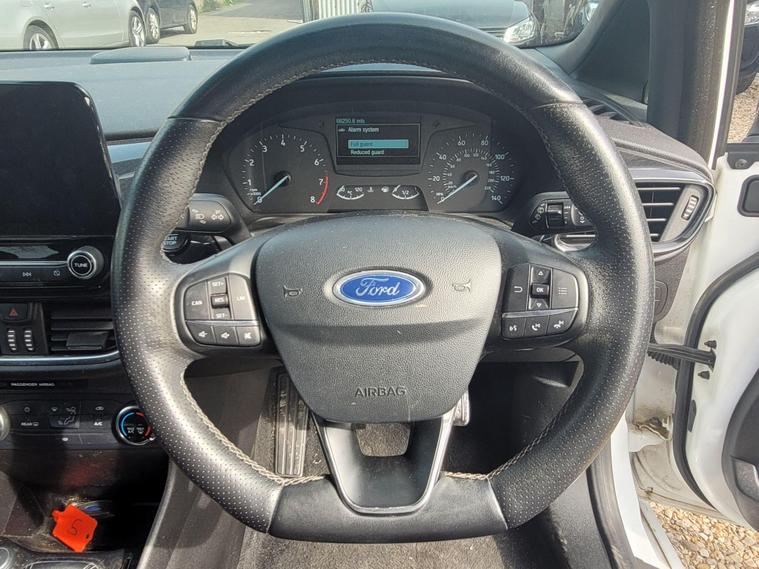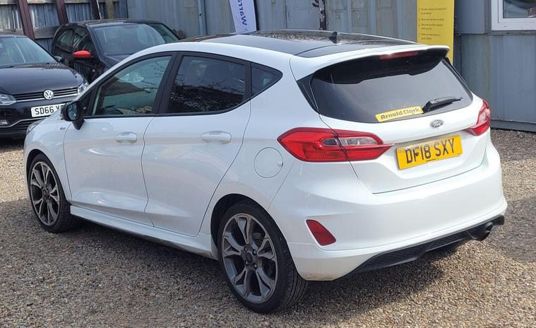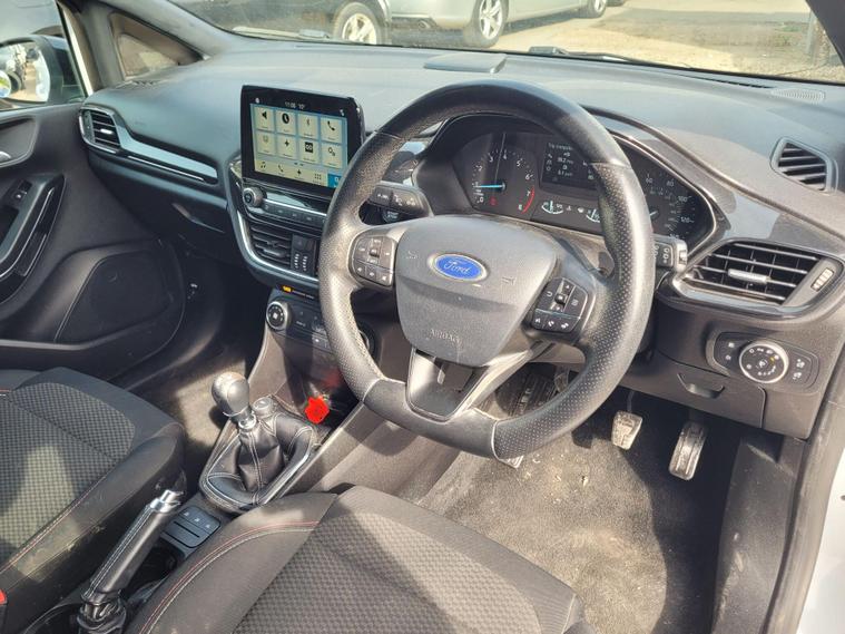 Boasting a full service history and having had only two owners, this 2018 Ford Fiesta T ST Line presents a well maintained example of this popular model. Powered by an efficient 1.0 litre petrol engine, this Euro 6 compliant vehicle offers a compelling blend of performance and economy. The ST Line trim ensures a sporty aesthetic, while notable features include Ford DAB Radio with Ford SYNC3, offering seamless integration with Apple CarPlay and Android Auto for your smartphone. Comfort is further enhanced by manual air conditioning, and for added convenience and safety, it comes equipped with the NCAP Pack, including automatic headlights.This Ford Fiesta is designed to impress with its driving dynamics and cost of ownership. Experience brisk acceleration with a 0 to 62mph time of just 9.0 seconds, demonstrating its spirited performance. Its low CO2 emissions contribute to a more environmentally conscious drive, and with an impressive fuel economy of 55 miles per gallon, it stands out as a more economical choice compared to similar vehicles. To provide peace of mind, this Fiesta comes with a 3 month warranty and a 12 month MOT will be provided upon purchase, further underscoring its roadworthiness..