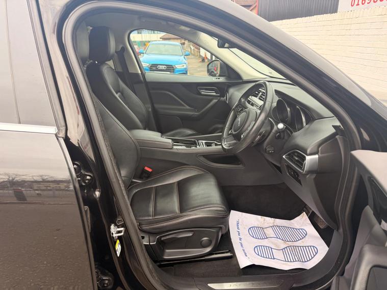 This 2017 Jaguar F PACE D180 Prestige offers exceptional value with its remarkably low mileage of just 66, 900 miles for its age. This Four Wheel Drive model is powered by an efficient 2.0L Diesel engine, meeting Euro 6 emissions standards. The Prestige trim ensures a comfortable and well equipped experience, featuring heated front seats for those colder journeys, rear parking aid to assist with manoeuvring, and Bluetooth telephone connectivity for seamless communication on the go. Enjoy a pleasant cabin environment with 2 zone climate control, and benefit from the convenience of automatic headlights.Experience impressive performance with an acceleration of 0 to 60 mph in just 8.2 seconds, a figure that stands out amongst similar vehicles. This F PACE also boasts a substantial boot space, making it ideal for families or those who require ample storage. Furthermore, its fuel economy is a notable highlight, achieving an impressive 53 mpg, which indicates its efficiency compared to other cars in its class. With a towing weight of 2400 kg, this Jaguar F PACE D180 Prestige is a versatile and capable choice..