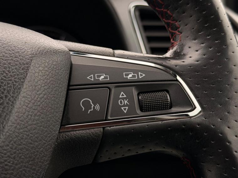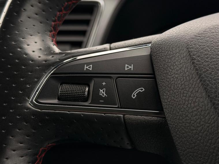 - Steering Wheel - Flat-Bottomed Perforated Leather with Red Stitching and FR Logo