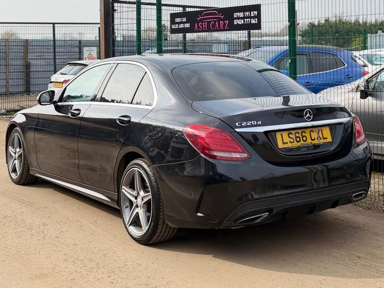 This 2016 Mercedes Benz C Class C220d AMG Line is a prime example of sophisticated engineering and refined driving. Finished in a sleek black leather interior, this Euro 6 compliant model boasts a powerful yet efficient 2.1L diesel engine, capable of reaching 0-62mph in just 7.4 seconds. Its striking appearance is enhanced by 19in AMG Multi Spoke Design alloy wheels, painted in a sophisticated titanium grey. Practicality is also key, with illuminated door and door handle recesses for added visibility and front parking sensors that include parking assistance, making manoeuvring a breeze. The advanced LED Intelligent Light System ensures optimal illumination in all driving conditions.Experience exceptional fuel economy with this C Class, achieving an impressive 63 mpg, which is a significant advantage for your running costs. Furthermore, its low insurance group rating indicates that ownership is more affordable compared to many other vehicles in its class. These highlights demonstrate that this Mercedes Benz C Class C220d AMG Line offers a superior combination of performance, economy, and style, making it a truly compelling choice..
