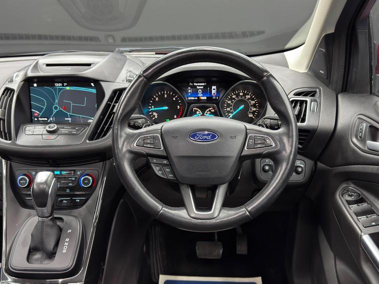 Here at Motor Gurus we are delighted to offer a Ford Kuga 2.0 TDCi Titanium Powershift AWD. This vehicle is in very good condition when taking into consideration the vehicle's age and mileage. This specific vehicle is finished in a GLOSS RED and is contrasted by a BLACK LEATHER/CLOTH interior. This vehicle comes included with: FRONT & REAR PARKING SENSORS, REAR PARKING CAMERA, PRIVACY GLASS, SLIDING GLASS PANORAMIC ROOF, ELECTRIC TAILGATE, DRIVER ELECTRIC SEAT, CRUISE CONTROL, AUTOMATIC HEADLIGHTS, TWIN CUPHOLDERS, AUTO PARK, CLIMATE CONTROL, HEATED STEERING WHEEL, SAT NAVIGATION, DAB RADIO, BLUETOOTH AUDIO, TELEPHONE CONNECTIVITY, APPLE CARPLAY, AMBIENT LIGHTING, LANE KEEPING ASSIST, TRAFFIC SIGN ASSIST, ATTENTION ASSIST, BLIND SPOT MONITORING, TYRE PRESSURE MONITORING AND MUCH MORE! Our Ford Kuga 2.0 TDCi Titanium Powershift AWD has come to us with SERVICE HISTORY and will also come provided with a 12 MONTH MOT and a FRESH OIL SERVICE before it leaves our premises (OTR)..