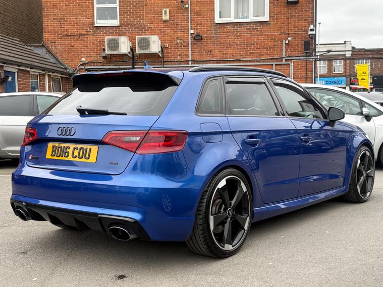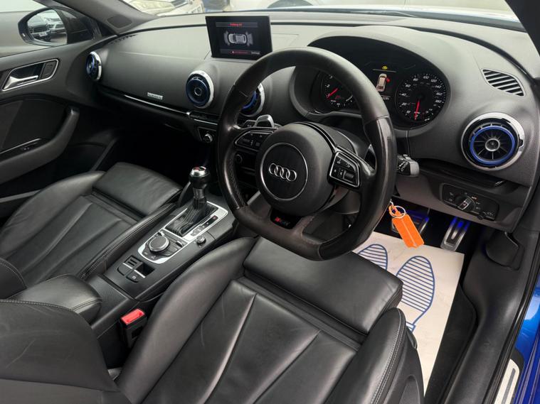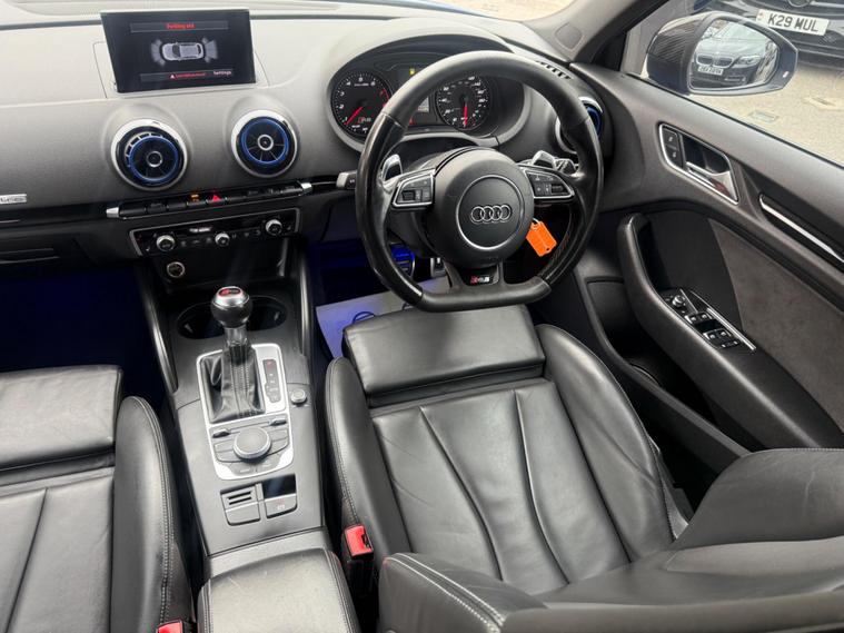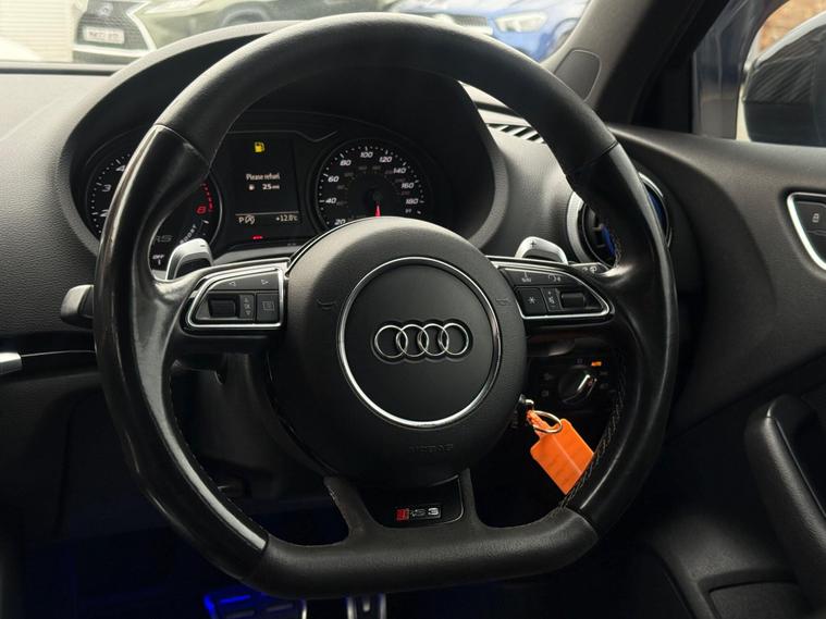 This 2016 Audi RS3 TFSI boasts exceptionally low mileage for its age, having covered just 55, 102 miles. This performance saloon features a powerful 2.5 litre petrol engine paired with a four wheel drive drivetrain, ensuring excellent traction and handling. As a Euro 6 compliant vehicle, it meets modern emissions standards. Inside, you'll find comfort and convenience with Dual Zone Electronic Climate Control and Heated Front Seats. The All Weather LED Headlights with automatic on function and the Audi Parking System Plus with front sensors make driving and parking a breeze, even in challenging conditions.The RS3 TFSI stands out with its impressive acceleration, achieving 0-62mph in a remarkable 4.3 seconds. This rapid acceleration demonstrates its superior performance compared to many other vehicles in its class. The combination of its potent engine, advanced four wheel drive system, and sophisticated technology creates a truly engaging driving experience..