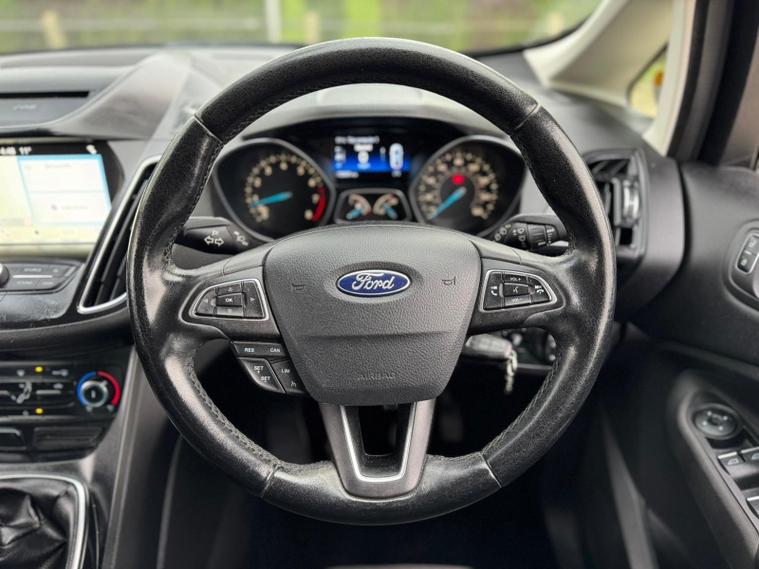 This 2017 Ford Grand C-Max T Zetec offers a versatile and practical driving experience, perfect for families needing space and modern technology. This Euro 6 compliant model features a 1.0L petrol engine and seating for seven, making it ideal for both daily commutes and longer journeys. It comes equipped with the Ford SYNC3 DAB Navigation System, complete with Bluetooth connectivity, and a Ford DAB Audio System also featuring SYNC and Bluetooth. For added convenience and safety, rear parking sensors are included, offering parking assistance.With an impressive highlight fuel economy of 54 mpg, this Grand C-Max demonstrates excellent efficiency compared to similar vehicles. Its low CO2 emissions further contribute to its cost effective running. This Zetec trim level combines functionality with comfort, providing a well rounded package for any driver seeking a reliable and spacious family car..