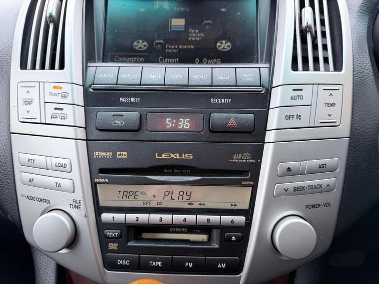 This 2008 Lexus RX 400h SE offers an exceptional blend of performance and efficiency, boasting a 3.3 litre petrol hybrid engine paired with a smooth four wheel drive system. As a well appointed SE model, this vehicle provides a refined driving experience, complemented by its spacious boot, making it ideal for both daily commutes and longer journeys.The Lexus RX 400h SE stands out with its impressive acceleration, reaching 0 to 60 miles per hour in just 7.6 seconds, a testament to its powerful hybrid technology. Furthermore, its placement in a low insurance group means that running costs are kept manageable, offering excellent value compared to many other vehicles in its class..