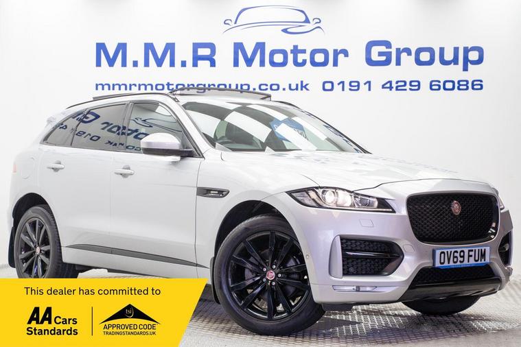 67, 800 miles, This 2019 Jaguar F-PACE D180 R-Sport boasts a clear vehicle history, offering you peace of mind. This stylish SUV features a powerful 2.0 litre diesel engine, delivering an impressive 0-60mph time of just 8.4 seconds, all managed through a smooth Four Wheel Drive system. As a Euro 6 compliant vehicle, it meets stringent emission standards. The R-Sport trim enhances its already dynamic presence, and you'll appreciate the convenience of front and rear parking aids, a rear camera, and Xenon headlights with distinctive LED signatures. Inside, the heated front seats ensure comfort in all conditions, and Bluetooth connectivity keeps you connected on the go.The generous boot space provides ample room for all your luggage, making it ideal for family trips or weekend adventures. With a substantial towing weight of 2400 kg, this F-PACE is also a capable companion for towing. These features, combined with its performance and comfort enhancements, clearly set this Jaguar F-PACE apart from other vehicles in its class, offering a superior driving experience.Please call our experienced sales team on 01914800597 for any additional specification queries, an in depth appraisal/ Video call or maybe we can help fund your new car. All our vehicles are prepared to the highest standards by our expert technicians in our fully equipped preparation centre as we're an AA approved dealer. Every car must go through a strict and thorough inspection, Items that require attention, mechanically or cosmetically are addressed prior to delivery. We offer a wide range of Finance and Warranty packages as well as fantastic trade rates for allow wheel refurbs/colour changes, window tinting and much more. All our vehicles are subject to a £199 service support fee and are therefore supplied with pre delivery service, 12 months MOT, 12 months AA breakdown cover and 6 months Auto Protect warranty that can be extended up to 24 month. All vehicles are HPI clear a full report can be supplied at point of sale. Home Delivery can be arranged throughout the UK. We welcome part exchanges..