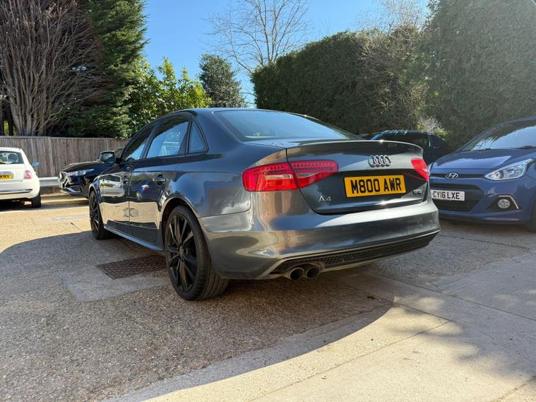 **Audi A4 1.8 TFSI Black Edition Euro 5 (s/s) 4dr****Registration:** M800AWR**Year:** 2013 (13)**Mileage:** 94, 000 miles**Fuel:** Petrol**Transmission:** Manual**Colour:** Grey**Owners:** 6 Owners**ULEZ:** Compliant**Price:** £5, 995---S LINE-NEW MOT-NEW TYRES**Vehicle details:**• 94, 000 miles• Partial service history• 12 months MOT will be provided• Clear vehicle history check• Desirable Black Edition model• Smooth and responsive 1.8L TFSI petrol engine• Good fuel economy – up to 44 MPG• Low CO₂ emissions• Low insurance group – economical to run• **3 MONTHS AA WARRANTY AND 12 MONTHS AA BREAKDOWN COVER**---**Features and equipment:**• Black Edition specification• Adaptive Cruise Control• Audi Parking System Advanced – front sensors• Bluetooth connectivity with Audi Connect• Audi Exclusive leather covered steering wheel• Audi Exclusive carpets• DAB radio• Dual zone climate control• Multifunction steering wheel• Electric windows• Electric mirrors• Alloy wheels---A **stylish Audi A4 Black Edition** offering a premium driving experience, strong performance and great specification. With its **sporty look, comfort and efficiency**, this car is a fantastic choice for both daily use and long journeys.---**WE DO PART EXCHANGE****WE ALSO BUY CARS – BEST QUOTATIONS OFFERED****For more available cars:* dealer's website / Call:** 01223964083**Location:** CB24 9LQ.
