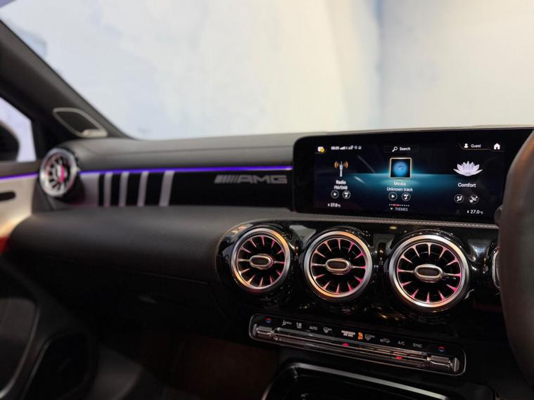 This 2020 Mercedes-Benz A45 AMG S Plus boasts exceptionally low mileage for its year, having covered just 27, 000 miles. As a Euro 6 compliant model, it features a powerful 2.0L petrol engine paired with a four wheel drive system, offering dynamic performance. The AMG S Plus trim ensures a premium experience, enhanced by features such as wireless charging for your devices, dual Bluetooth connectivity with two USB Type C ports, and the convenience of KEYLESS-GO for effortless locking and unlocking.Experience impressive acceleration with a 0-62mph time of just 3.9 seconds, a figure that sets this A Class apart from many others. The THERMOTRONIC luxury automatic climate control with a two zone system and display ensures comfort for all occupants, while Blind Spot Assist provides an extra layer of safety. Furthermore, this model offers a surprisingly large boot space, making it as practical as it is exhilarating..