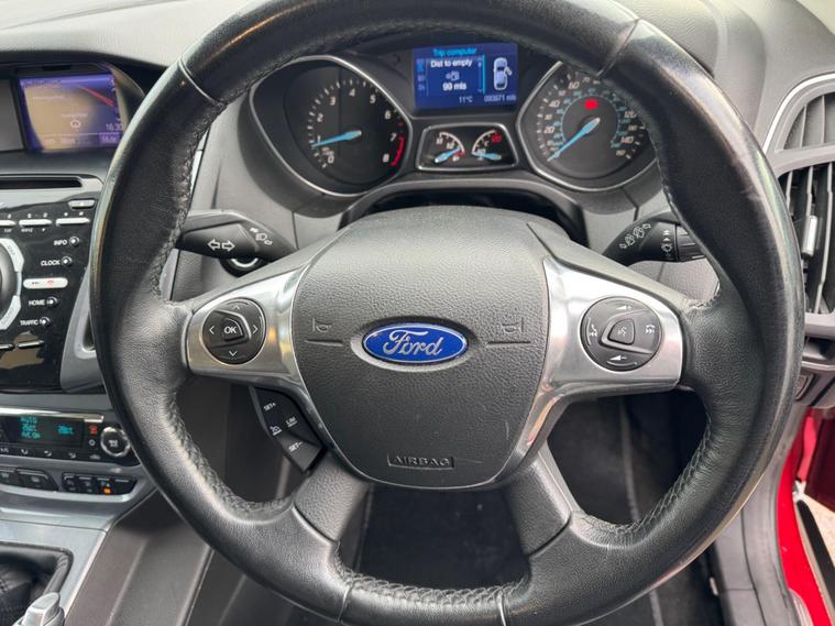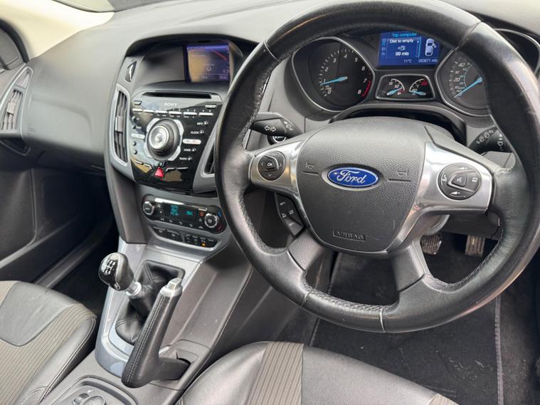 This 2013 Ford Focus T Titanium X benefits from a clear vehicle history check, offering you peace of mind. This well appointed model features a responsive 1.0L petrol engine and comes in the desirable Titanium X trim. Inside, you'll find comfort with heated driver and passenger seats, while the Sony DAB audio system with Bluetooth handsfree and voice control ensures your journeys are both entertaining and connected. The car also boasts automatic Bi-Xenon headlights for enhanced visibility.The Ford Focus T Titanium X stands out with its impressive fuel economy, achieving up to 57 miles per gallon, which indicates it is more economical than many similar vehicles. Furthermore, its low CO2 emissions are better for the environment compared to other cars in its class. Practicality is also a strong point, with generous boot space making it ideal for shopping trips or holidays..
