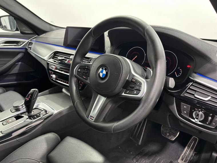 Our BMW 5 SERIES is finished in Carbon Black Metallic and comes with optional extras worth of £3, 755.AUTOMATIC ALL LED HEADLIGHTS | SATELLITE NAVIGATION SYSTEM | FRONT & REAR PARKING SENSORS | 20'' ALLOY WHEELS | HARMAN KARDON SOUND SYSTEM | LEATHER INTERIOR WITH FRONT HEATED SEATS | BLUETOOTH WITH AUDIO STREAMING | TWO-ZONE CLIMATE CONTROL | ELECTRIC, HEATED & FOLDING SIDE-VIEW MIRRORS | CRUISE CONTROL | DAB TUNER | MULTIFUNCTIONAL STEERING WHEEL WITH PADDLE-SHIFTERS | RAIN SENSORS | USB CONNECTIVITY | FOLDABLE REAR SEATS.This vehicle's specification has been provided by the leading data supplier CAP HPI, which provides vehicle data across the whole of the industry. However, we cannot guarantee the accuracy of any data provided by 3rd Party sources as the specification can sometimes vary. Please check with a salesperson and ensure you physically inspect the vehicle in respect of any items which may affect your decision to purchase. FOR FULL SPEC PLEASE CHECK BELOW.