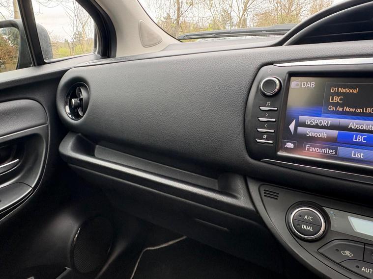 Boasting a full service history and a clear vehicle history check, this 2018 Toyota Yaris VVT-h Design presents a superb ownership proposition. This Euro 6 compliant model features a responsive 1.5L Petrol Hybrid engine, offering an impressive fuel economy of 72 mpg. Inside, you'll find a wealth of desirable features including a Skyview Panoramic Roof with a fixed sunroof, Toyota Touch 2 with Go Navigation, and automatic air conditioning for a comfortable driving experience. Further enhancing convenience are Bluetooth connectivity and a reversing camera for easier parking.This Yaris is designed to be economical and user friendly, indicated by its low insurance group and low CO2 emissions, making it a cost effective choice for many drivers. With only two previous owners and a 6 month warranty included, this vehicle represents excellent value and is ready for its next owner..