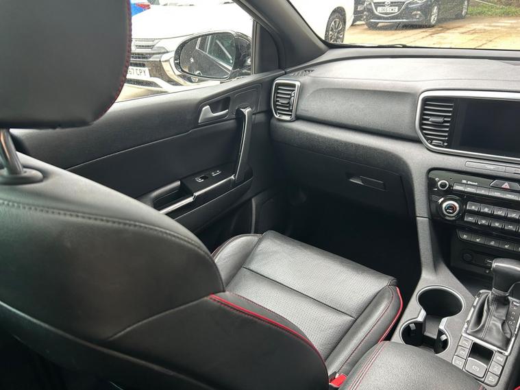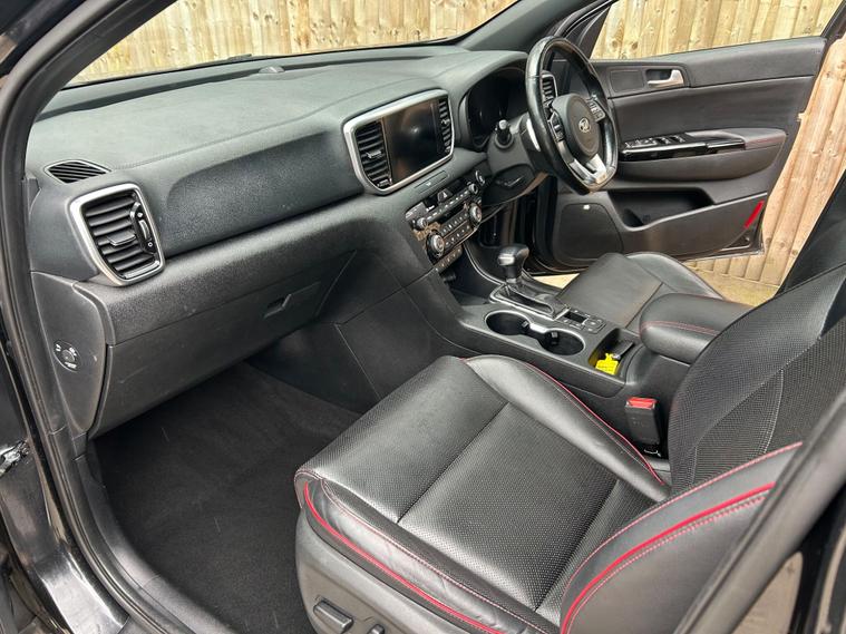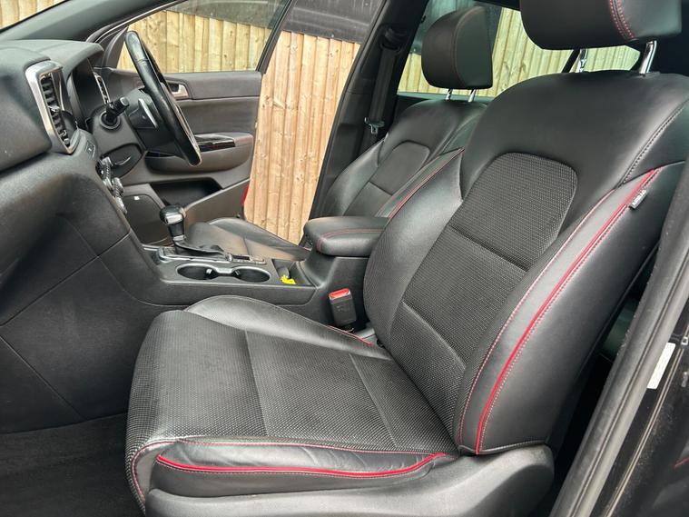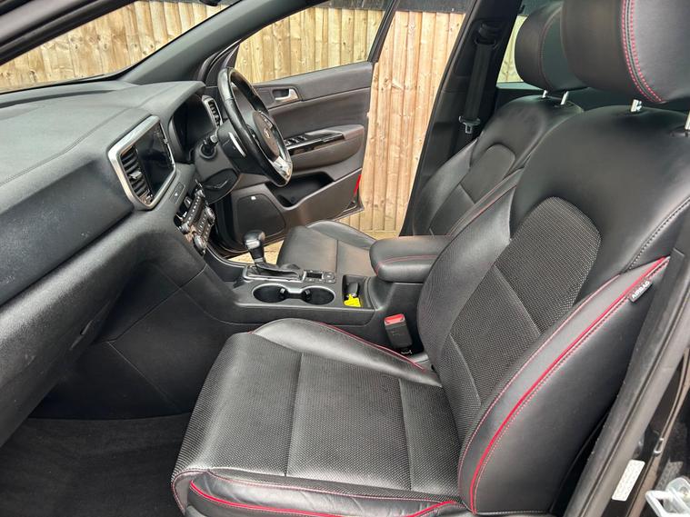 This 2019 Kia Sportage T-GDi GT-Line S offers a compelling blend of style and practicality, boasting a robust 1.6 litre petrol engine and Four Wheel Drive capability for confident handling in various conditions. As a Euro 6 compliant vehicle, it meets modern emissions standards. Inside, you'll appreciate the comfort of heated front and outer rear seats, while the automatic headlight control ensures optimal visibility. Stay connected and entertained with Apple CarPlay and Android Auto integration, and enjoy effortless journeys thanks to the adaptive cruise control. The reversing camera system adds an extra layer of convenience when parking.The Sportage GT-Line S stands out with its impressive acceleration, reaching 0-60mph in just 8.8 seconds, demonstrating its responsive performance. This model also benefits from a low insurance group, making it an economical choice for many drivers. Furthermore, the generous boot space provides ample room for luggage, shopping, or sports equipment, indicating its superior versatility compared to similar vehicles..