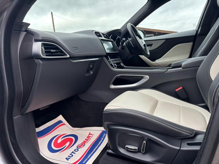 Hello & welcome to CMC Automotive. Here at CMC we are an approved AA trusted dealer. All vehicles come with nationwide warranty. We are delighted to offer this beautiful, low mileage, Jaguar F-PACE 2.0 D180 R-Sport Auto AWD. Service history with vehicle. Finished in Corris Grey Metallic. Boasts an excellent specification, sliding panoramic sun roof, front heated ebony/light oyster perforated leather seats, satellite navigation, reverse camera, and lane assistance. Please see below for full specification and extras. ALL OUR VEHICLES COME HPI CLEAR. AA HISTORY CHECKED. WE OFFER COMPETITIVE FINANCE PACKAGES, APPLY ONLINE. NATIONWIDE DELIVERY AVAILABLE. EXTENDED WARRANTIES AVAILABLE. FCA APPROVED DEALER. ICO COMPLIENT DEALER. PART EXCHANGE WELCOME..