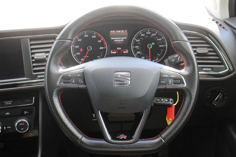 0% deposit finance availiable all cases considered. Boasting exceptionally low mileage for its age, this 2018 SEAT Leon TSI FR presents a superb opportunity. This Euro 6 compliant model features a responsive 2.0 litre petrol engine, paired with the sporty FR trim. You'll appreciate the convenience of Dual Zone Climate Control, ensuring comfort for all occupants, and the practicality of the Convenience Pack Plus, which includes automatic headlights. Navigating tight spaces is made effortless with front and rear parking sensors, and staying connected on the go is simple thanks to SEAT Full Link Smartphone Integration, supporting Mirror Link, Apple CarPlay, and Google Android Auto.The performance of this Leon is a standout feature, with a brisk 0-62mph acceleration time of just 7.2 seconds, demonstrating its dynamic capabilities. This acceleration figure indicates a more engaging driving experience compared to many similar vehicles. Furthermore, the Leon offers generous boot space, making it a practical choice for everyday use and longer journeys alike. The inclusion of Full LED headlights not only enhances visibility but also contributes to the vehicle's modern aesthetic, setting it apart from other models..