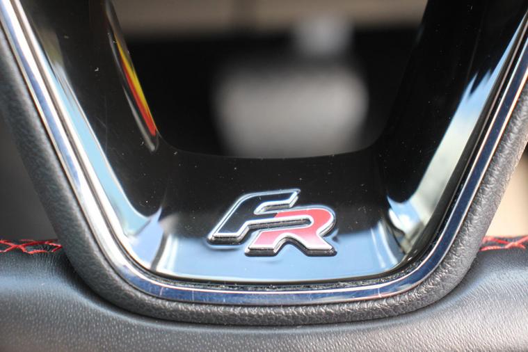 - Steering Wheel - Flat-Bottomed Perforated Leather with Red Stitching and FR Logo