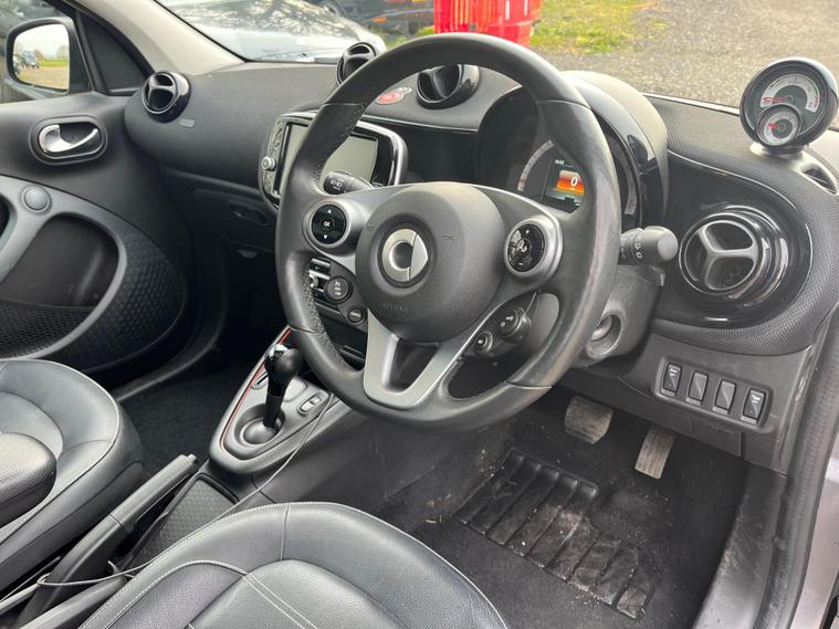 This 2022 Smart forfour Exclusive is a superb example, having been cherished by just one owner and boasting exceptionally low mileage for its age at only 12529 miles. This electric model, with its 18 kWh battery offering a maximum range of 77 miles when new, is ideal for city driving and shorter journeys. Charging is convenient, taking approximately 3 hours and 46 minutes at home with a 7kW charger. The striking Tridion Safety Cell in Graphite Grey Metallic Paint sets a stylish tone, complemented by a fixed Panoramic Roof with a Sun Blind.Inside, the Exclusive trim level ensures a comfortable and connected experience. The Smart Media System seamlessly integrates Android Auto and Apple CarPlay, allowing easy access to your favourite apps and music via Bluetooth. This particular vehicle also benefits from the Winter Package, which includes Climate Control, heated seats for both the driver and front passenger, and a heated steering wheel for those colder days. Furthermore, the rear seats are also heated, offering enhanced comfort for all occupants. These features collectively highlight how this Smart forfour Exclusive offers a superior level of comfort and technology compared to other vehicles in its class..