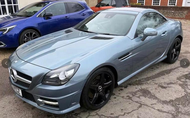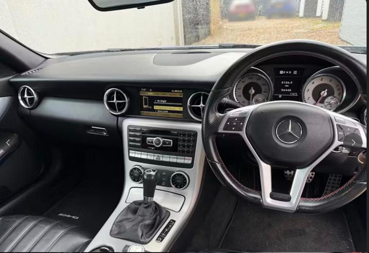 BETTER PICS LATER TODAY This Mercedes-Benz SLK 1.8 SLK250 BlueEfficiency AMG Sport G-Tronic+ Euro 5 (s/s) 2dr ULEZ COMPLIANT LOOKS AMAZING IN THE BEST COLOUR SILVER GREY METALLIC CONTRASTING BLACK LEATHER HEATED SEATS WITH AIR-SCARF AND INTERIOR AND ALUMINIUM TRIM TO THE DASH AND DOOR CARDS YES VERY SMART. THE LAST LADY OWNER HAS LOVED AND CHERISHED THE CABRIOLET FOR OVER 3 YEARS & YOU CAN TELL THAT BY THE SUPERB CONDITION THE IS IN YES AND IT'S REALLY GOOD MILEAGE FOR THE YEAR 86K WITH A FULL MERCEDES MAIN DEALER SERVICE HISTORY THE ROADSTER HAS A POWER CONVERTIBLE PANORAMIC GLASS ROOF, FACTORY COLOUR TOUCH SREEN NAVIGATION SYSTEM, AMG STYLING PACKAGE-FRONT SPOILER, SIDE SKIRT STEREO RADIO CD PLAYER WITH DAB STEREO SOUND SYSTEM, HAND FREE BLUETOOTH TELEPHONE CONNECTION, AIR SCARF, REVERSING CAMERA, FRONT AND REAR PARKING SENSORS, REMOTE CONTROL CENTRAL LOCKING SYSTEM, 18 INCH BLACK AMG ALLOY WHEELS WITH GOOD TYRES. THERE ARE 2 KEYS & ALL THE BOOKS AND MANUALS. This 2012 Mercedes Benz SLK250 AMG Sport offers a compelling blend of performance and comfort, making it a standout choice. Featuring the AMG Sport trim, this model is equipped with a responsive 1.8L petrol engine. Inside, you'll find the advanced COMAND Online System with Media Interface, ensuring seamless connectivity and entertainment. The innovative Panoramic Vario Roof, which includes an opening panoramic sunroof, allows you to enjoy the open air at your leisure. For added comfort during cooler drives, the AIRSCARF neck level heating system provides a warm embrace, while the telephone pre wiring with hands free facility keeps you connected on the go. The striking designo seat belts in red add a touch of sporty flair to the interior. Experience impressive efficiency with a fuel economy of 43 mpg, a highlight that demonstrates its advantage over many similar vehicles. This SLK250 AMG Sport also boasts low CO2 emissions, contributing to a more environmentally conscious drive. Its acceleration is brisk, reaching 0 to 62 mph in just 6.6 seconds, showcasing its dynamic capabilities..