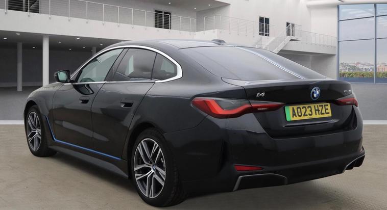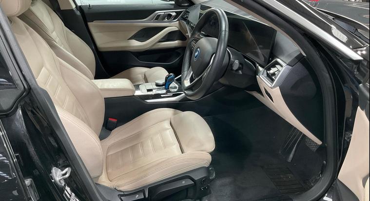Discover this 2023 BMW i4 40 Sport, an electric vehicle offering an impressive new battery range of 366 miles. This Sport trim model comes equipped with the Comfort Pack, which includes convenient Keyless Entry, and a heated steering wheel for those colder journeys. Inside, you'll find luxurious Vernasca Leather upholstery in Oyster with Grey Stitching, complemented by front lumbar support for the driver's seat and added Sun Protection Glass.Experience exhilarating performance with the BMW i4's ability to accelerate from 0 to 62mph in just 5.7 seconds, a highlight that sets it apart from many other vehicles. This electric i4 boasts a substantial boot space, offering practicality for your everyday needs and longer trips. When it comes to charging, you can achieve a full charge at home using a 7kW charger in approximately 12 hours and 30 minutes, or benefit from rapid public charging, reaching 80% capacity from empty in as little as 34 minutes..