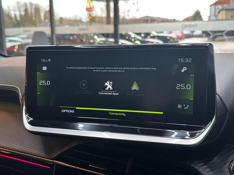 This 2023 Peugeot 208 GT is a superb example, having had only one owner since new. This stylish hatchback is powered by an efficient 1.2 litre petrol engine, meeting Euro 6 emissions standards. It boasts a range of advanced features designed for convenience and safety, including Blind Spot Monitoring with assistance, and Full LED Headlights with Smartbeam Assist. Parking is made simple with Visio Park 1, offering a 180 degree colour reversing camera and front and rear parking sensors. Inside, the PEUGEOT 3D i-Cockpit provides a configurable 3D head up instrument panel, and Mirror Screen compatibility ensures seamless integration with Apple CarPlay and Android Auto.The performance of this Peugeot 208 GT is impressive, achieving 0 to 62 miles per hour in just 9.9 seconds, while its fuel economy is a notable highlight, reaching up to 58 miles per gallon. These figures, along with its low CO2 emissions, demonstrate how this vehicle offers a more economical and environmentally conscious driving experience compared to many others in its class..