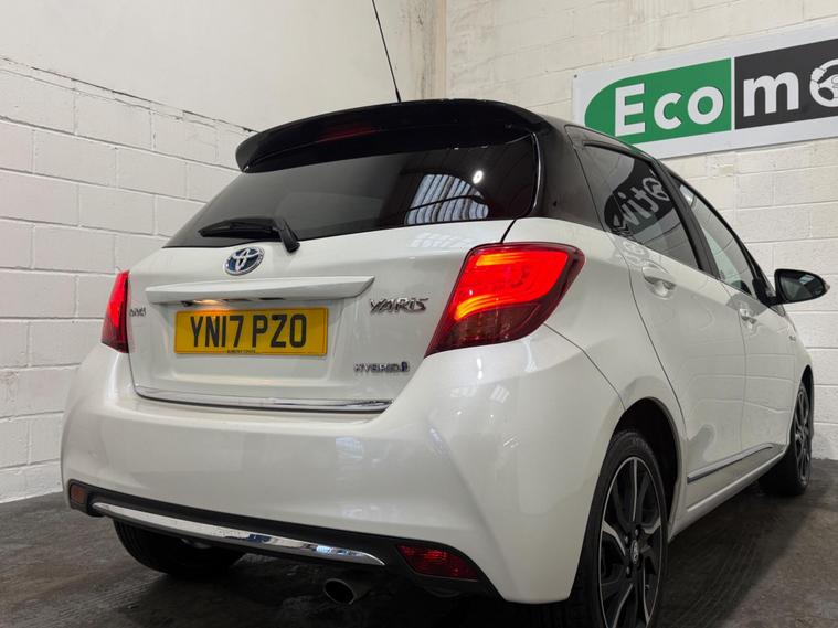 Discover this 2017 Toyota Yaris VVT-h Design, a smart choice for those seeking efficiency and practicality. This Euro 6 compliant model boasts a 1.5L petrol hybrid engine, offering an impressive fuel economy of up to 79 miles per gallon. Inside, you'll find a comfortable and convenient cabin featuring dual zone automatic air conditioning for personalised comfort, and Bluetooth connectivity for seamless audio streaming and handsfree calls. Parking is made easier with the integrated reversing camera and rear parking assistance.This Toyota Yaris stands out with its exceptionally low CO2 emissions and placement in a low insurance group, indicating it is more economical to run and insure than many other vehicles in its class. These highlights, combined with its efficient hybrid technology and the reputable Toyota build quality, make this Yaris a sensible and cost effective option for your next car..