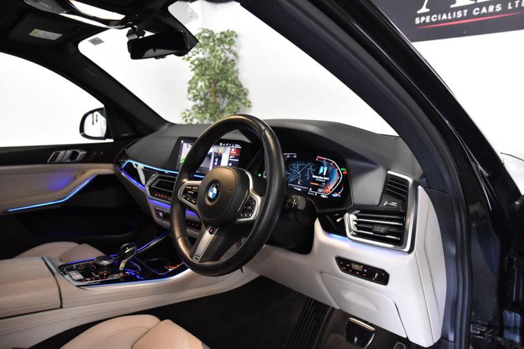 We are pleased to offer this stunning BMW X5 M-Sport finished in metallic Sapphire black with contrasting BMW Individual Ivory Merino leather interior. This car has covered just 47, 000 miles from new complete with fantastic service history with just two owners. The huge list of spec with this car includes heated and cooled front seats, heated outer rear seats, front heat comfort package, fully electric front seats with memory function, massage front seats, Harman Kardon audio, heads up display, soft close doors, 360 degree cameras, rear sun blinds, Apple car play, Android auto, comfort access, power tailgate, sin protection glazing, M-performance body styling, M-sport exhaust, configurable ambient lighting, LED headlights, auto lights and wipers, heated and cooled cup holders and much more..